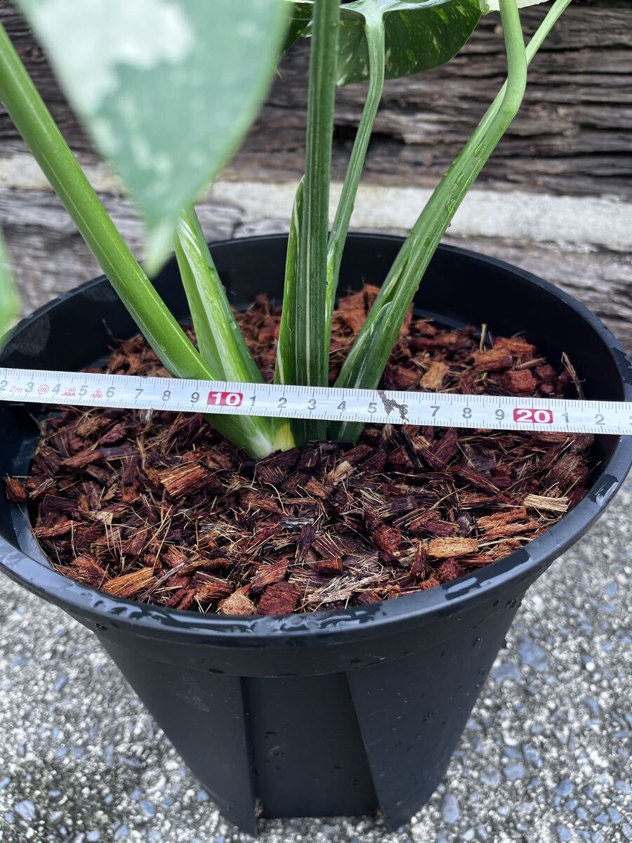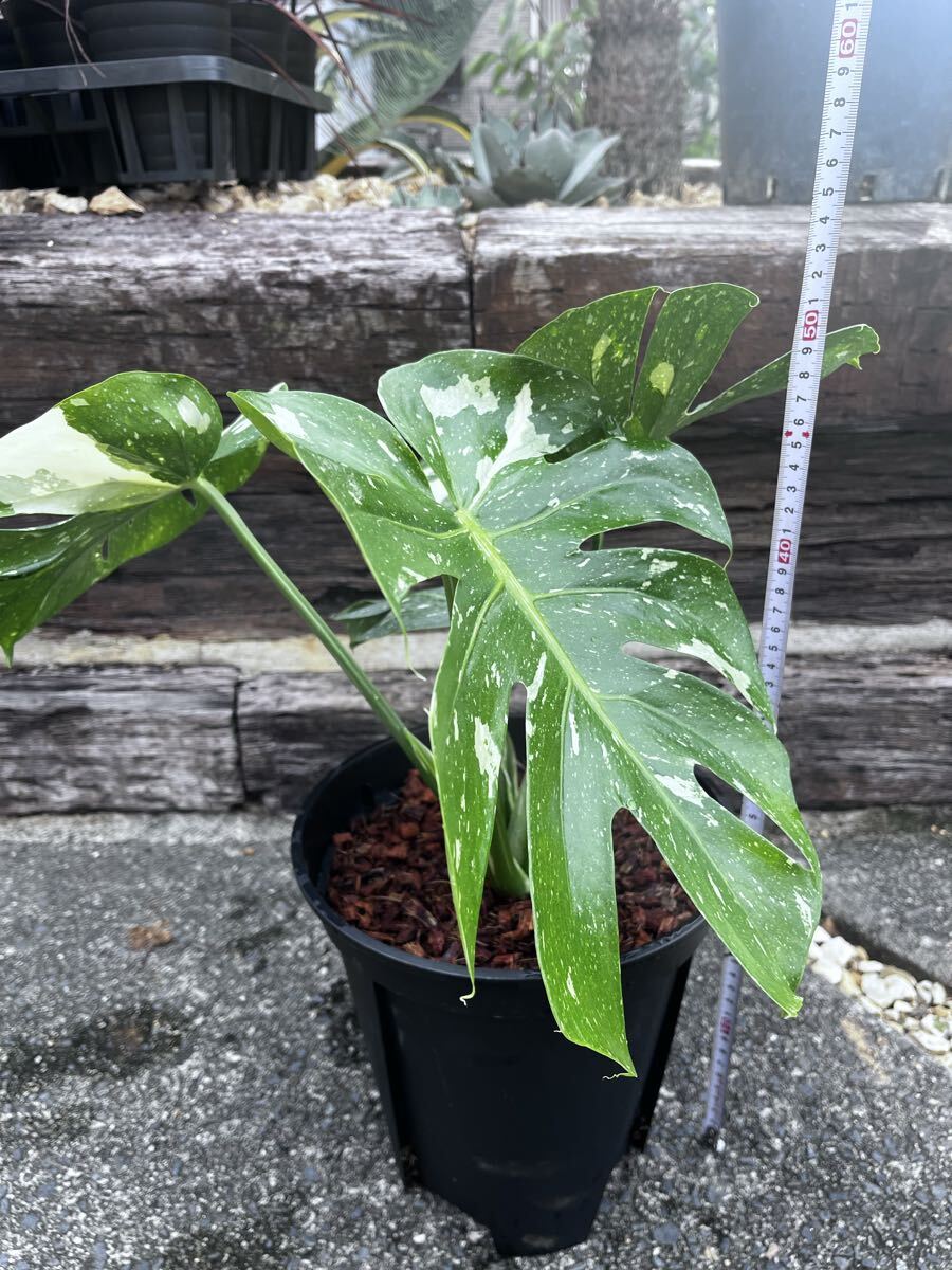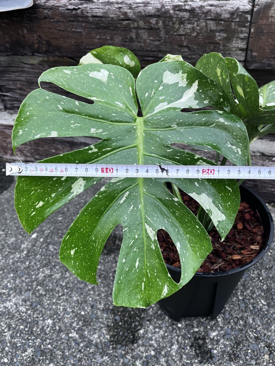 11月2日撮影。鉢底からの高さ約50cm、新しい葉の幅が26cmあります。8月に7号スリットポットに無機質の土に植え替えて現在は屋外の直射日光で管理しております。