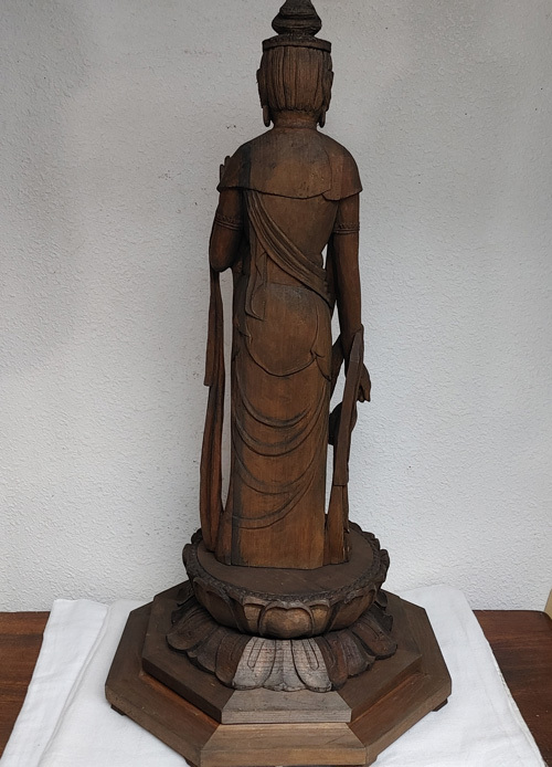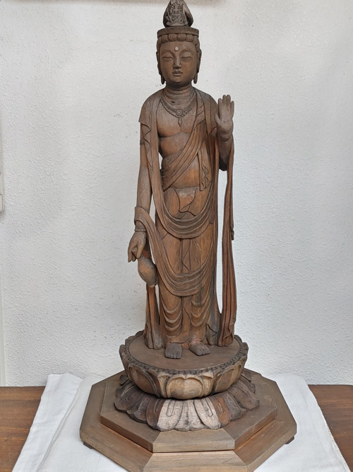 鎌倉期形古様式の特大型の木彫 の観音菩薩立像です。
