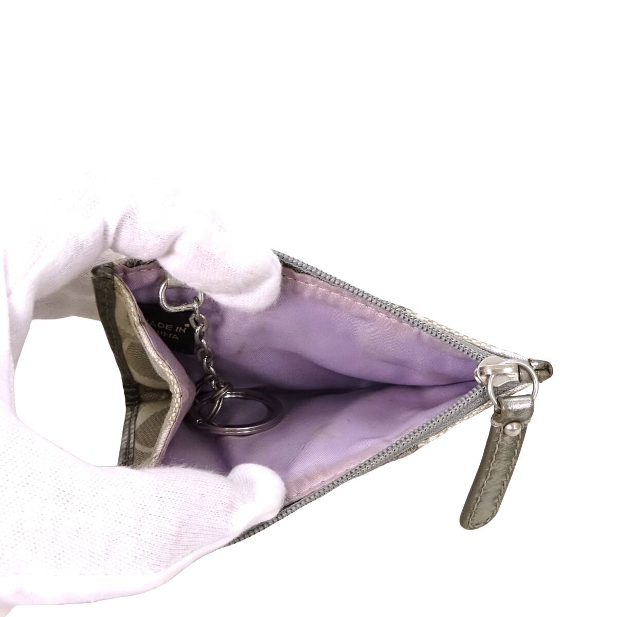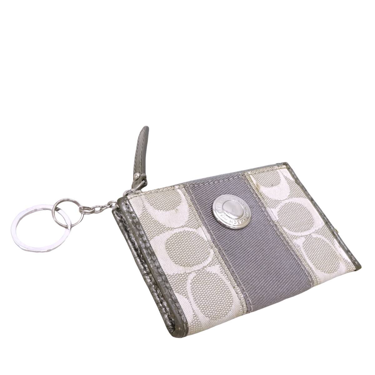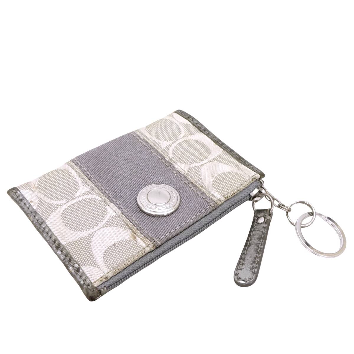 本物■コーチ■キーホルダー付コインケース シグネチャー ファスナーポーチ グレー カードケース 小銭入れ /94581