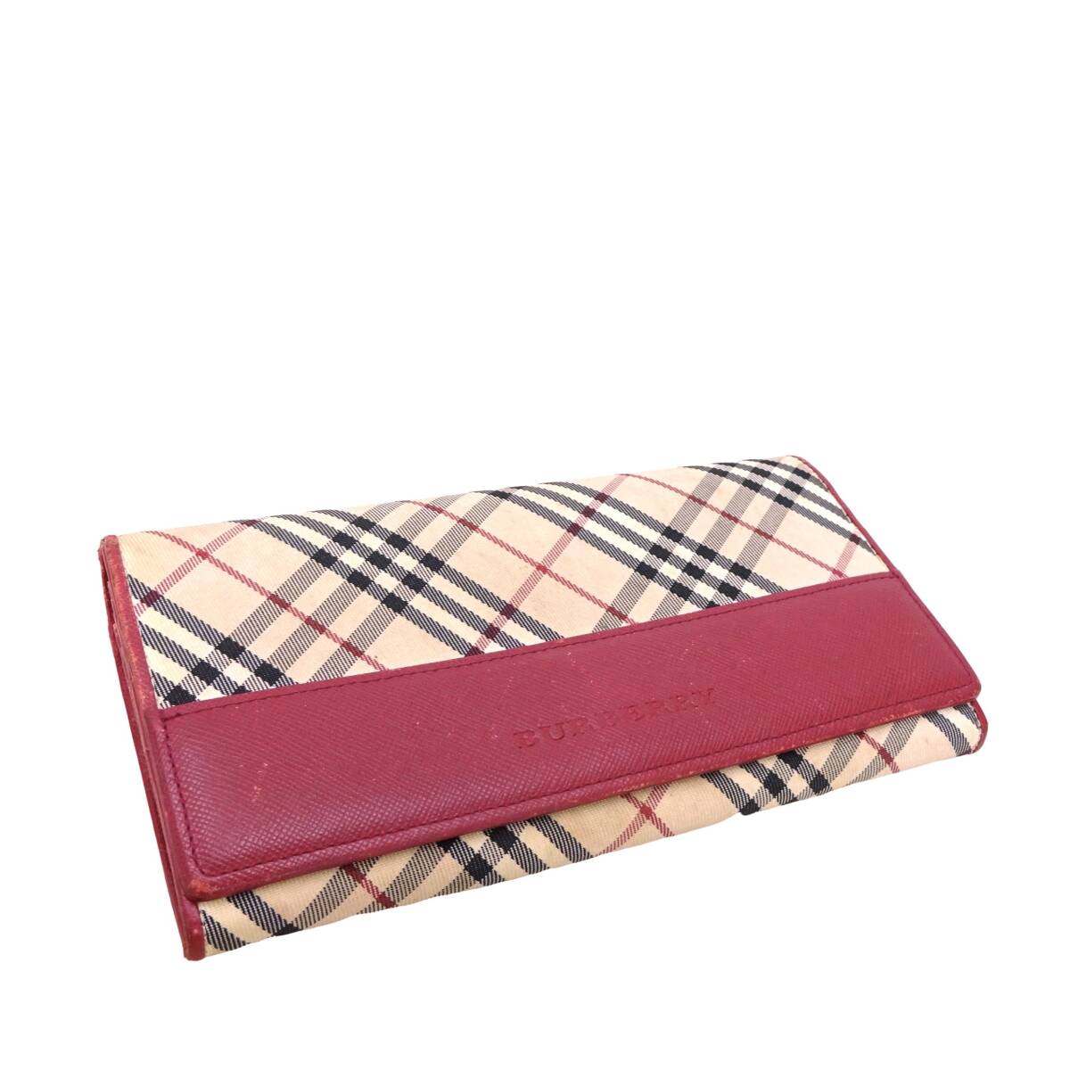 本物■バーバリー■ベージュ ノバチェック レッド レザー シルバー がま口長財布 /946401