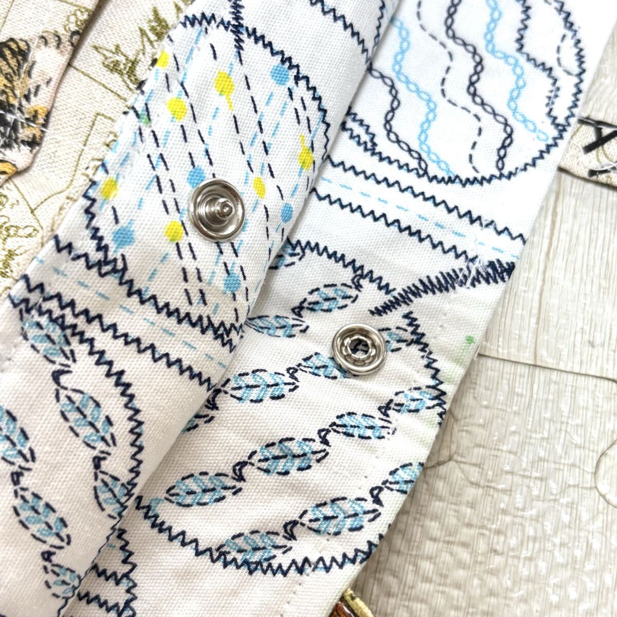 大きな入り口はパッチンと止められる留め具があり、表に5つ裏に2つポケットがあってとっても便利です♪