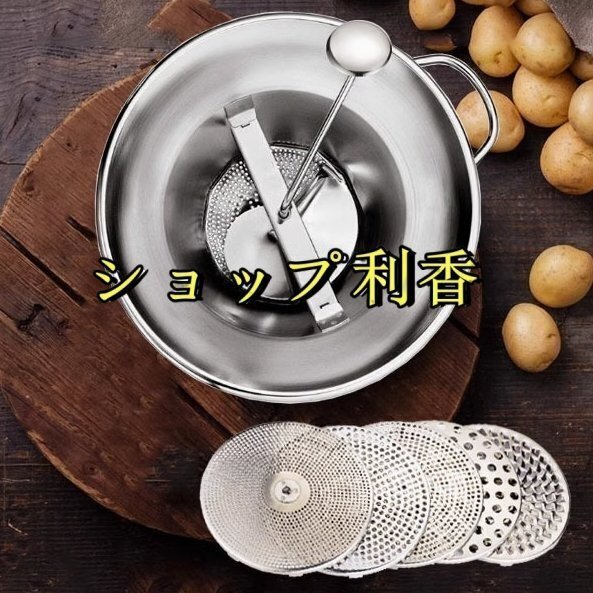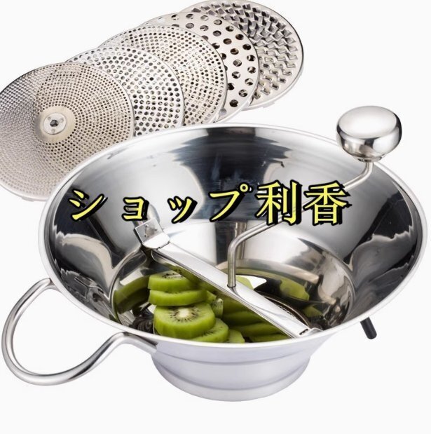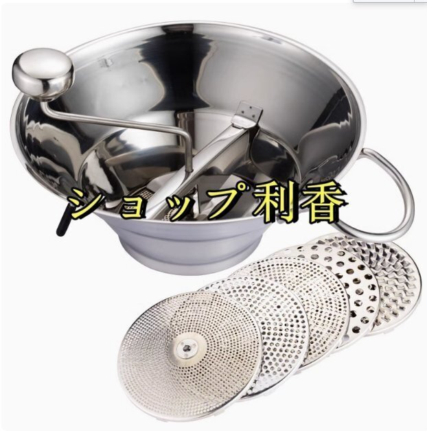 商品説明 商品説明 【商品詳細】★状態:新品未使用材質:高品質の304ステンレス鋼製で、耐久性があり、お手入れも簡単です。洗練された豪華な外観。小型軽量で、持ち運びや保管が簡単です。注:調理された野菜、果物などに適しています。研削板は5枚付さ:研削板の穴径はφ2