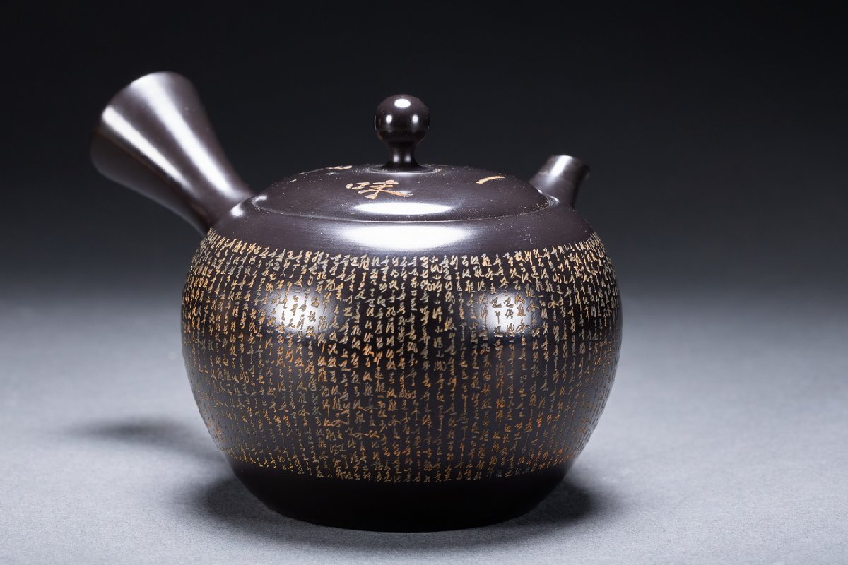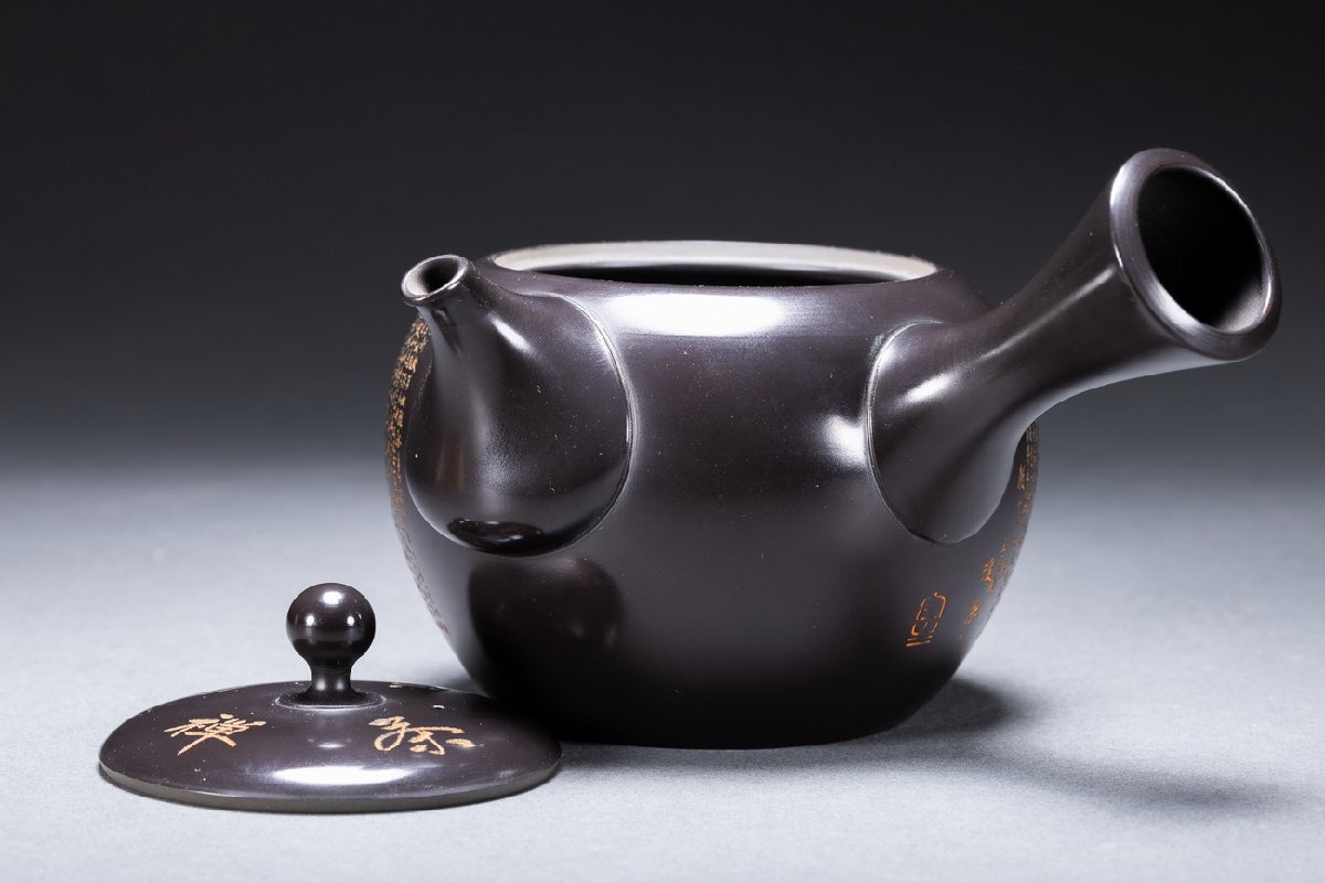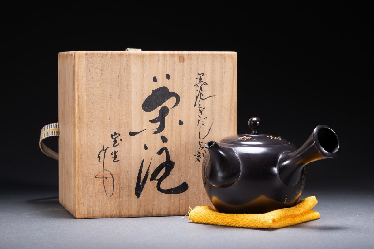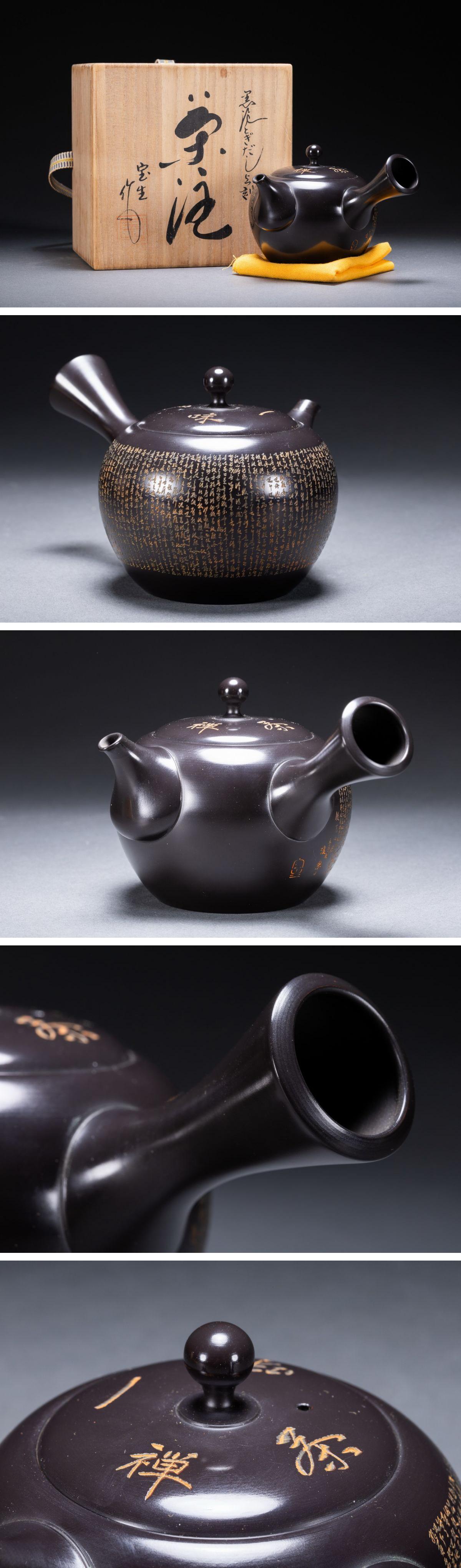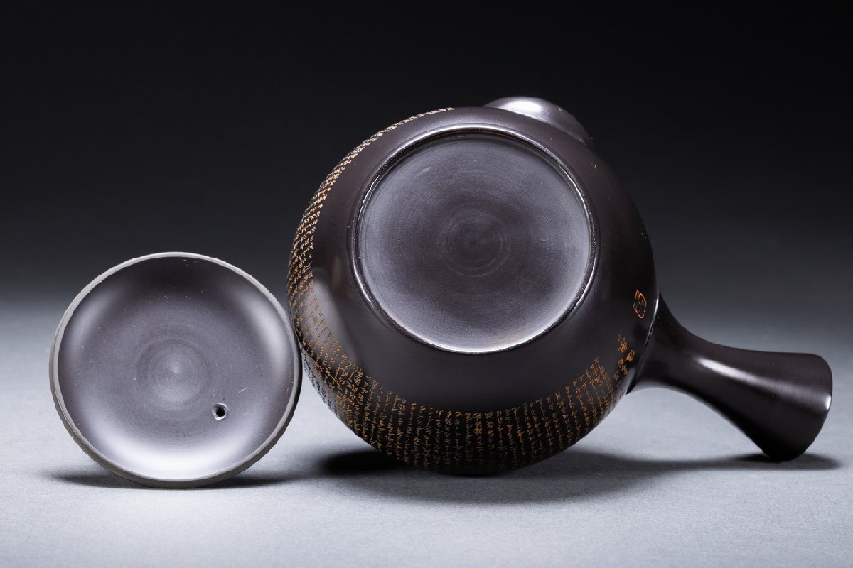 【雲錦】某有名オークション購入 時代物 常滑焼「宝生」作 心経刻入茶壷 共箱 茶煎道具 古置物 古美術 時代コレクション7L10-144S20