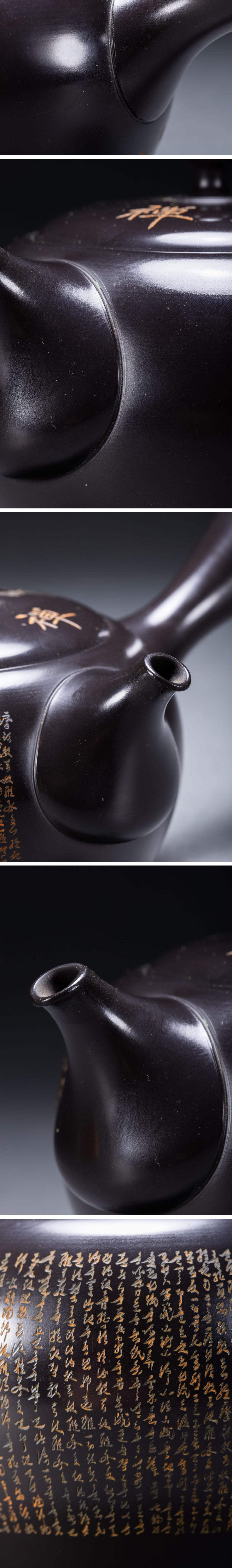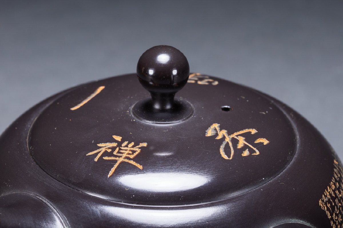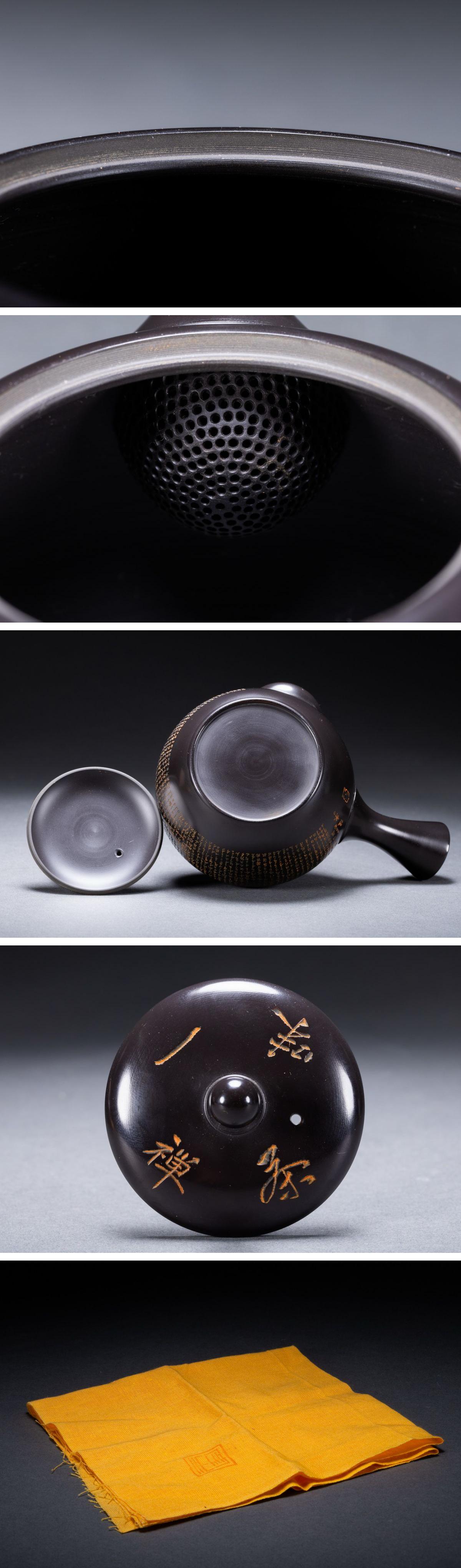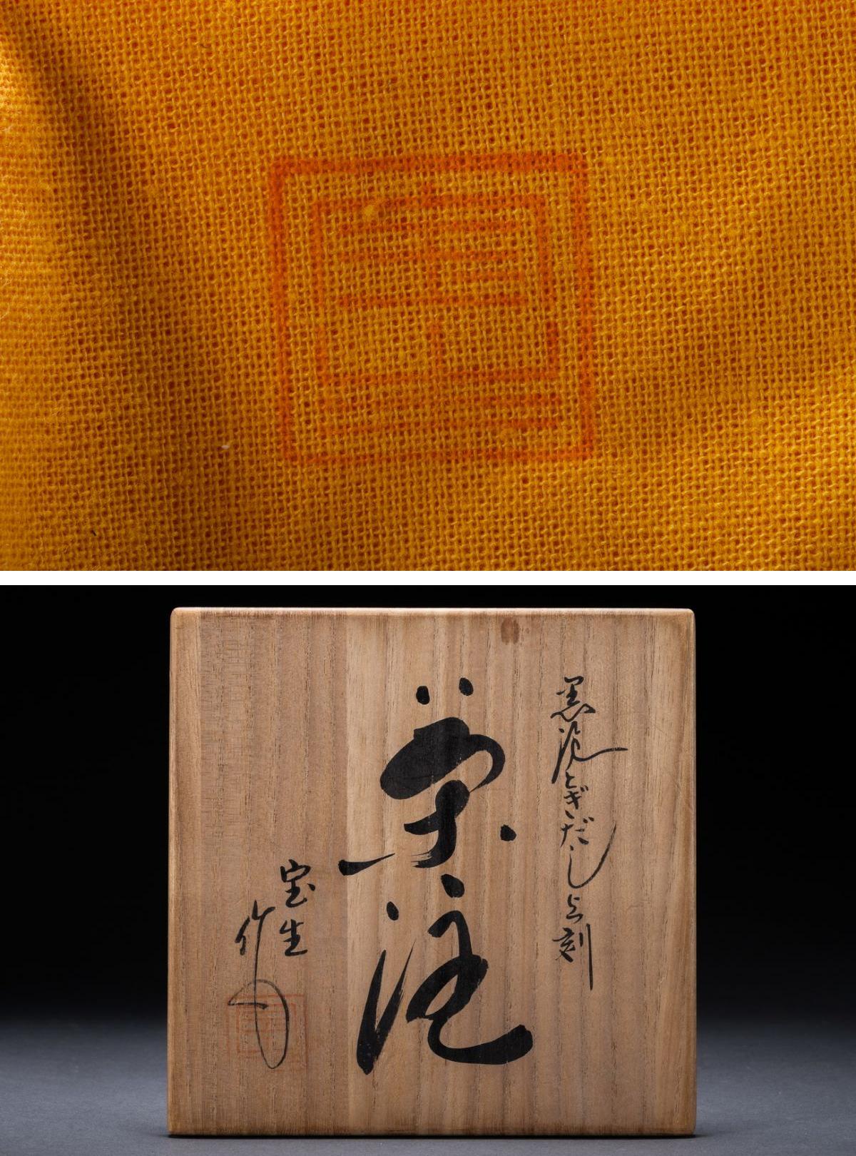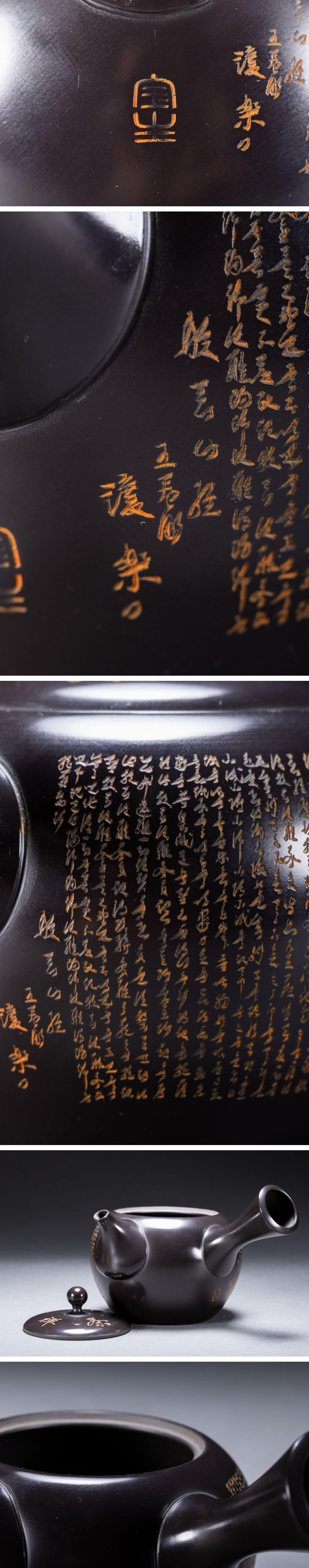 【雲錦】某有名オークション購入 時代物 常滑焼「宝生」作 心経刻入茶壷 共箱 茶煎道具 古置物 古美術 時代コレクション7L10-144S20