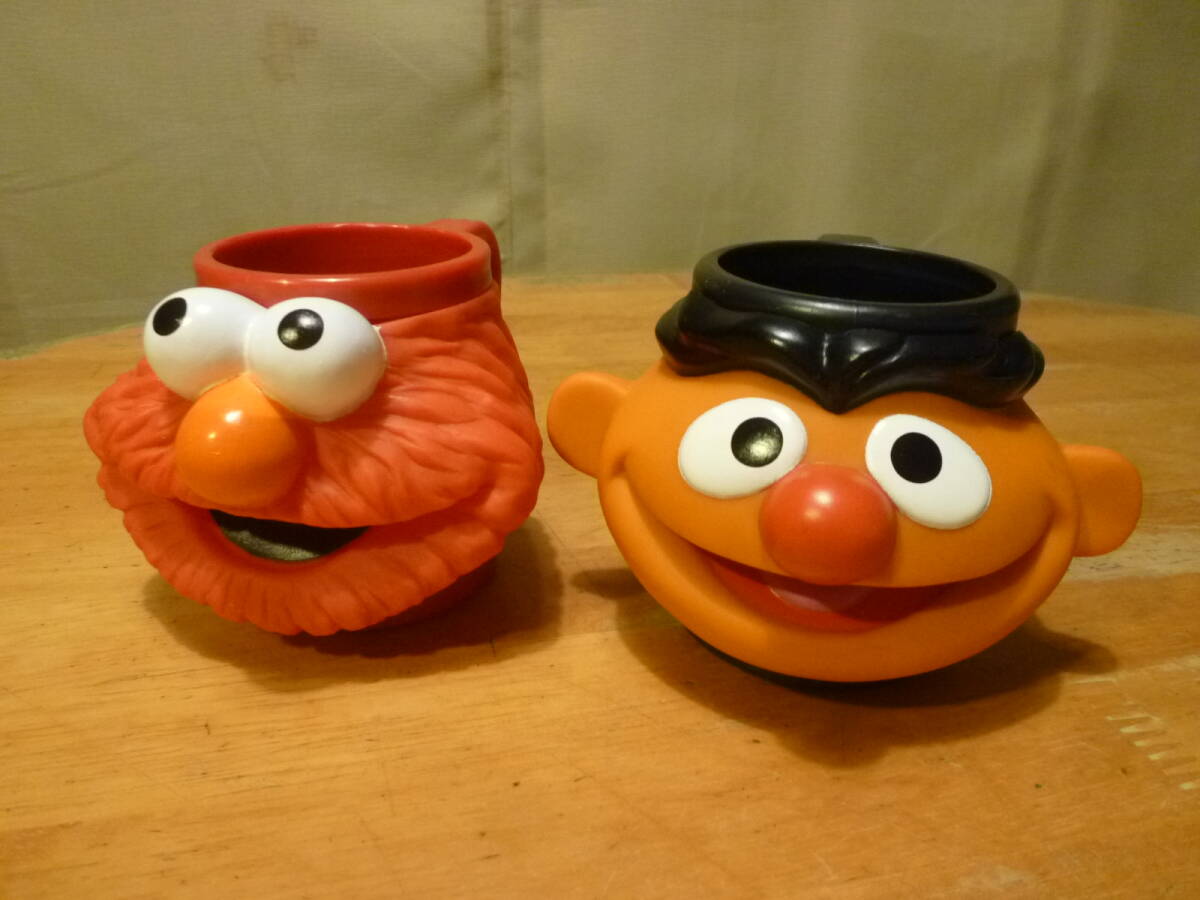 こちらは小さなお子様に人気のセサミストリートの頭部マグカップセットの様です。おなじみの飛び出した目玉や顔の表情がステキで、インテリアとしてもオシャレだと思います。
