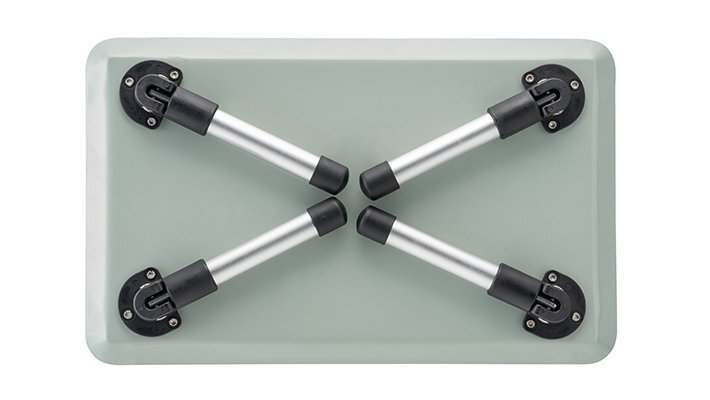 脚部は天板と一体型なので安定感があります。しかも、手軽なワンタッチ開閉。コンパクトに収納でき、持ち運びにも便利です。