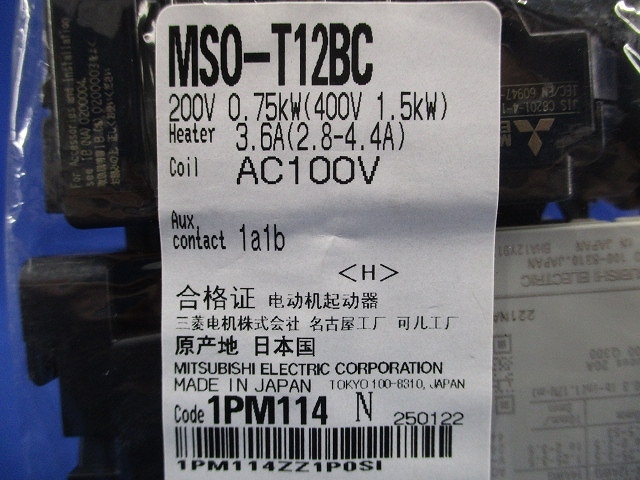 開放形電磁開閉器 交流操作形 3.6A(2.8-4.4AA) MSO-T12BC-0.75KW-200V-AC100V