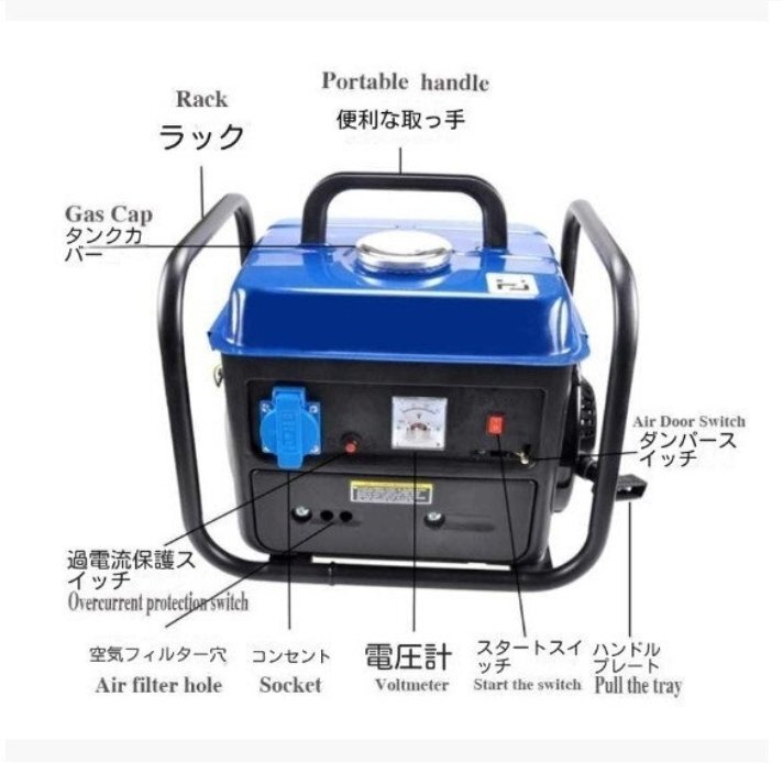 ガソリン発電機 小型ポータブル50HZ-60HZ 出力650 WIE 45動力100V