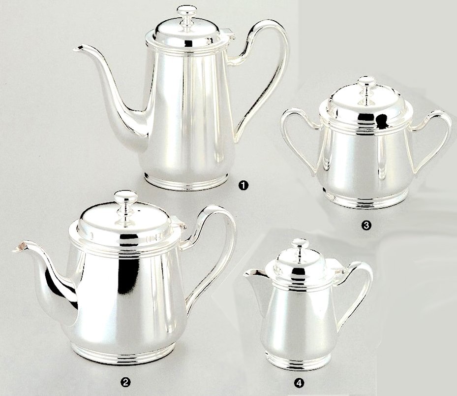 ☆早川シルバーウエスタン型コーヒー・ティー・シュガー・ミルクポット各5人用4点ホテル・レストラン等のご使用高級食器日本工業規格3種