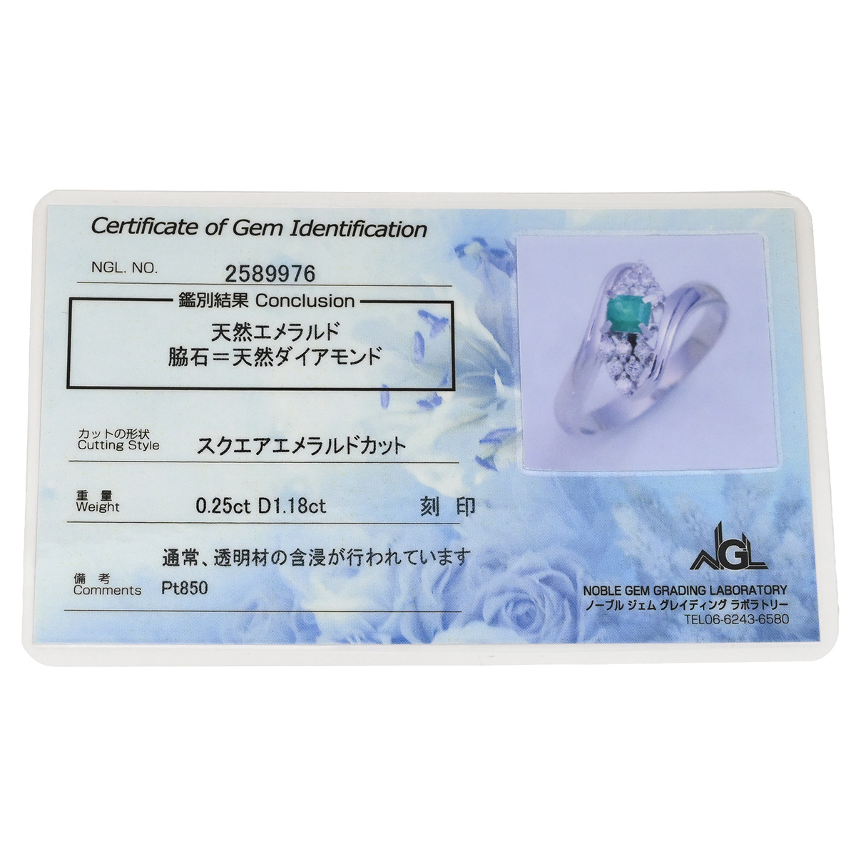 | 素材 | Pt850 / エメラルド / ダイヤモンド | |