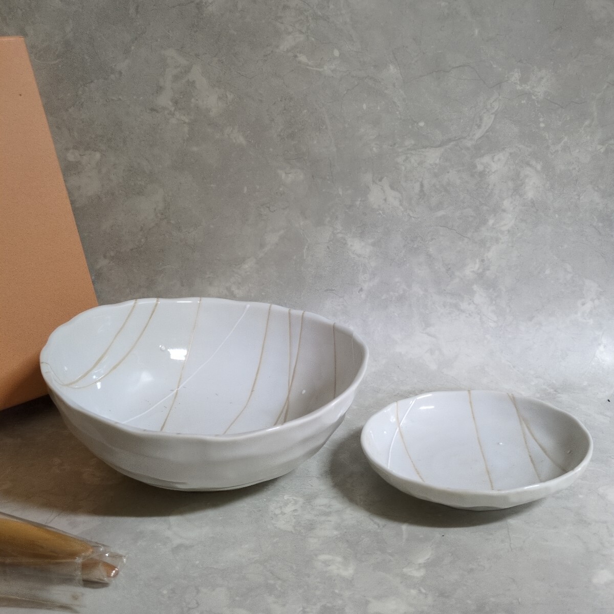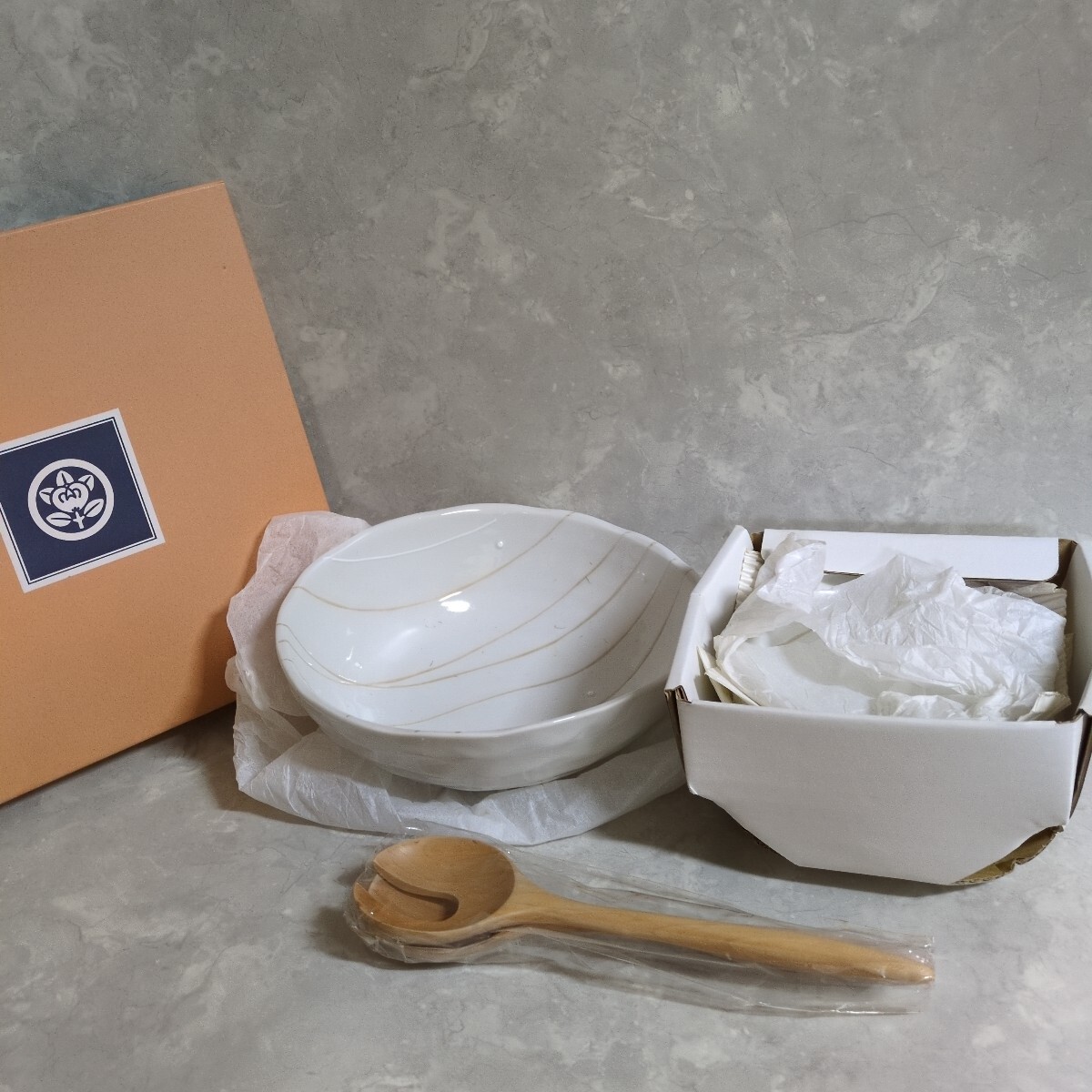 たち吉風紋パーティーボウルセット 鉢 サイズ約21cm×約18cm×約7cm 取り皿 サイズ約12.5cm×約3cm 木製サーバー ながさ約21cm