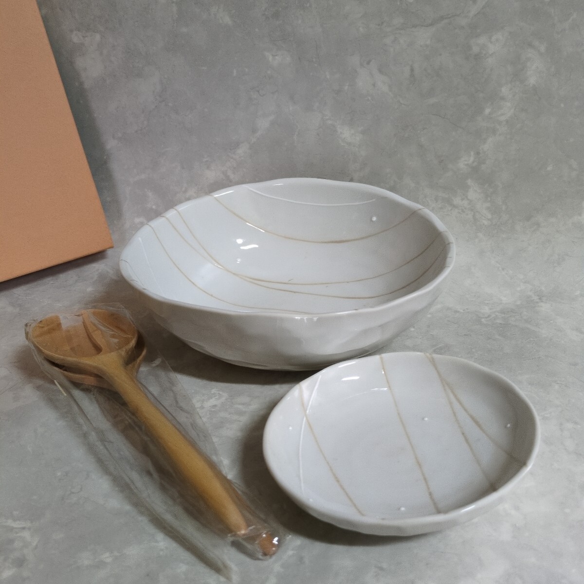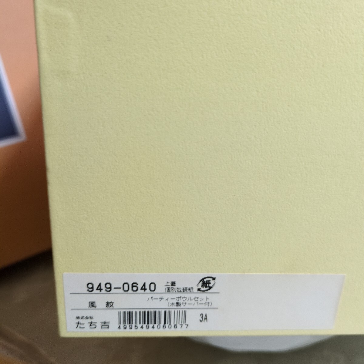 たち吉風紋パーティーボウルセット 鉢 サイズ約21cm×約18cm×約7cm 取り皿 サイズ約12.5cm×約3cm 木製サーバー ながさ約21cm