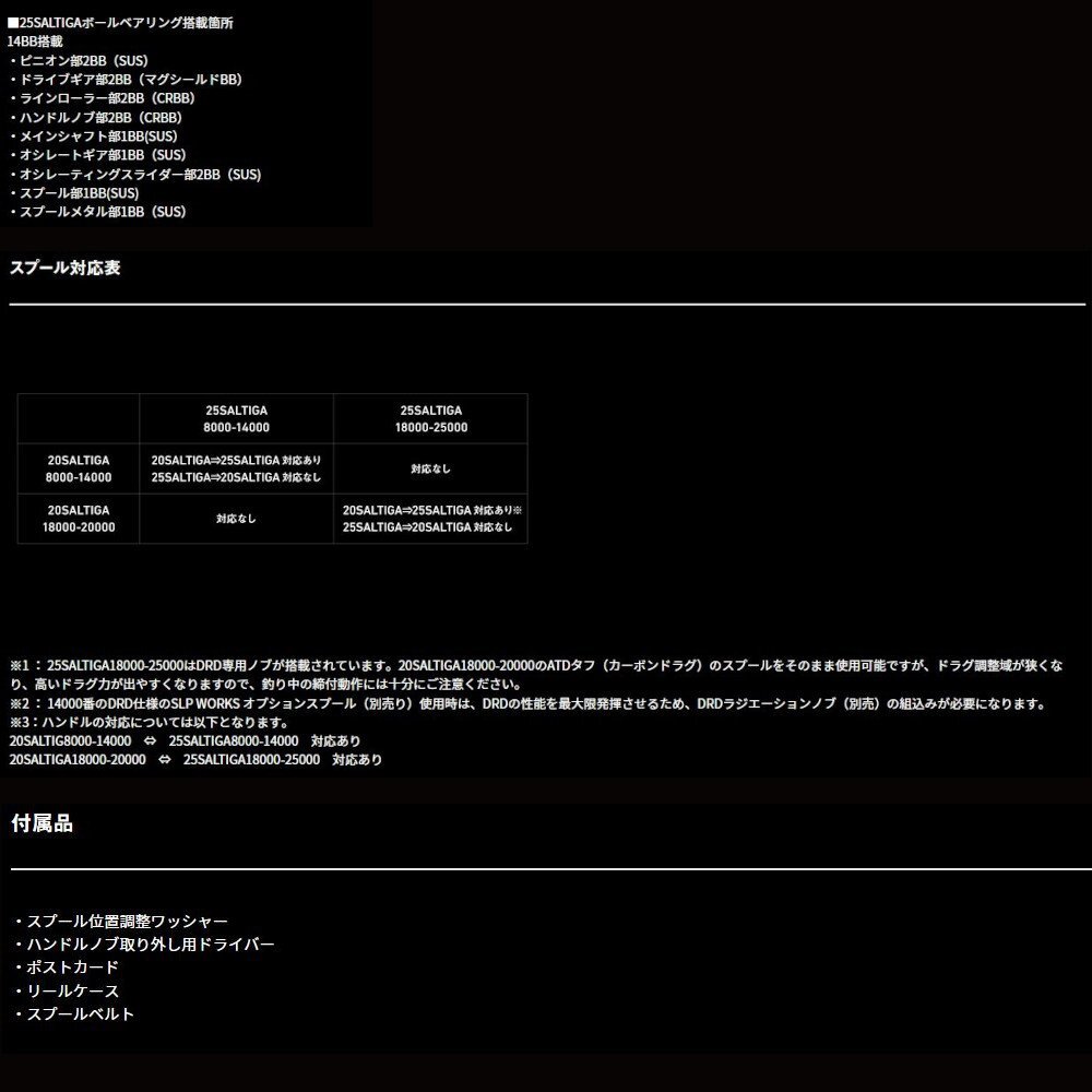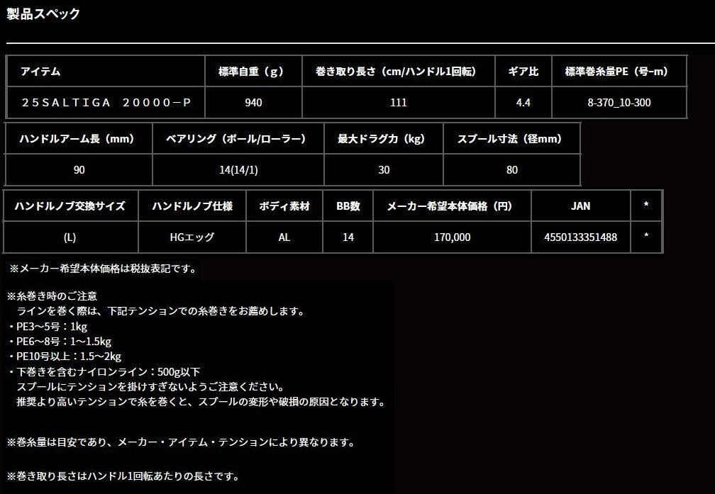 | 商品名 | 新品 ダイワ 25ソルティガ 20000-P 釣り具 スピニングリール 25SALTIGA 00065087 | ||||