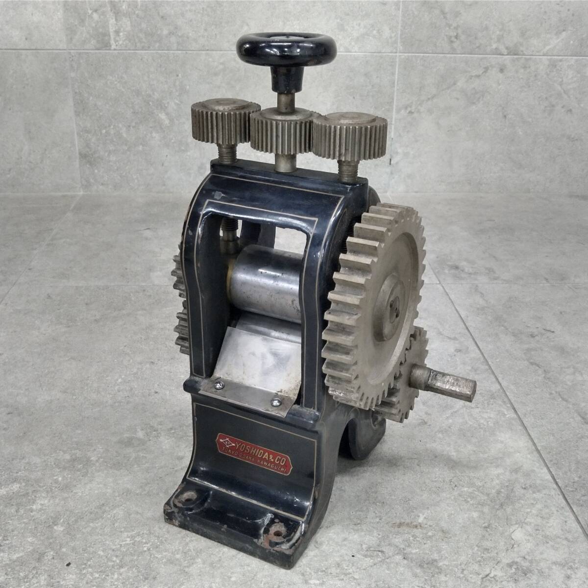 商品名:圧延機 ブランド:YOSHIDA 型 番:なし 年 式:不明 付属品:なし サイズ : (縦)約38cm × (横)約25cm × (奥)約21cm ※若干の誤差がある場合がございます。 状態について ランク 【D】稼働や動作の確認は行っておりません。 コメント ・素人の為、正しい使い方がわからず動作確認できていません ・全体的に錆があります ───────────────[ 状態ランク表 ]──────────────── 【N】 新品・未使用品の新古品です。 【S】 キズ・汚れがほとんど見受けられず、非常に状態の良い商品です。 【A】 わずかにキズ・汚れがありますが、全体的に状態の良い商品です。 【B】 キズ・汚れなど、使用感が見受けられますが、 中古品としては比較的良好な状態です。 【C】 キズ・汚れ・型崩れなどの目立つ使用感がありますが、 ご使用には問題のない商品です。 【D】 稼働や動作の確認は行っておりません。 【E】 破損や欠損などが見受けられる商品ですが、 素材やパーツとしての価値があり、リメイクや部品取りにおすすめの商品です。 ※ランクは社内基準です。 ──────────────────────────────────────── 送付方法 ゆうパック(着払い) 120サイズ ※千葉市稲毛区からの発送となります。 ※出品時に商品を梱包しているため、基本的に※「同梱不可」となります。 ※こちらの商品は発送のみの対応となります 防犯上の観点から、 【引取り限定】【家財便または引き取り】の商品以外は 従業員の安全の為、直接の引取りはお断り致します。 | |||