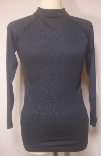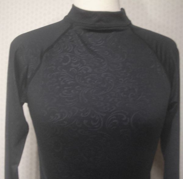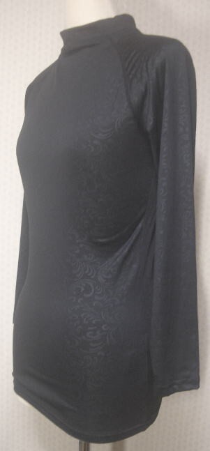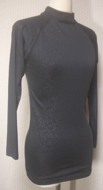 【送料無料!】レディス エンボスプリント(無地総柄) 長袖&モックネック ストレッチ&紫外線遮蔽 Tシャツ<黒:Lサイズ>2433171