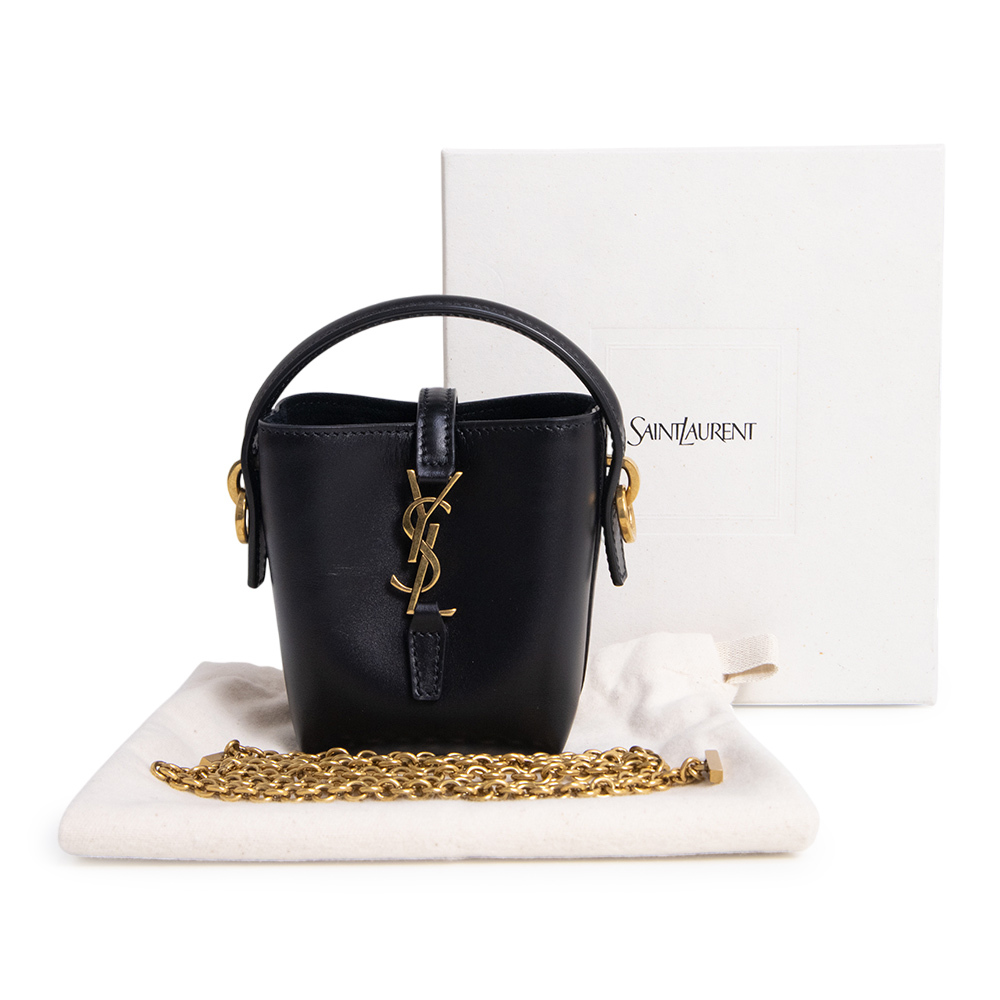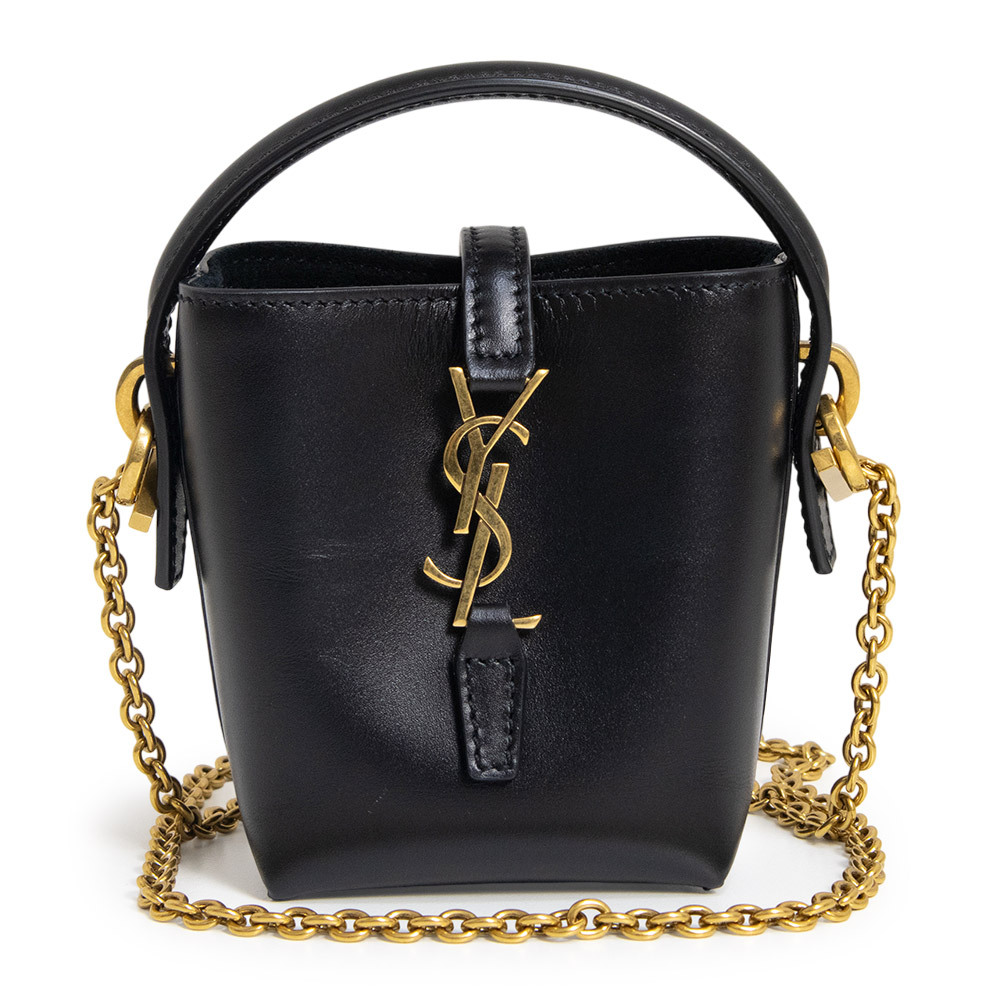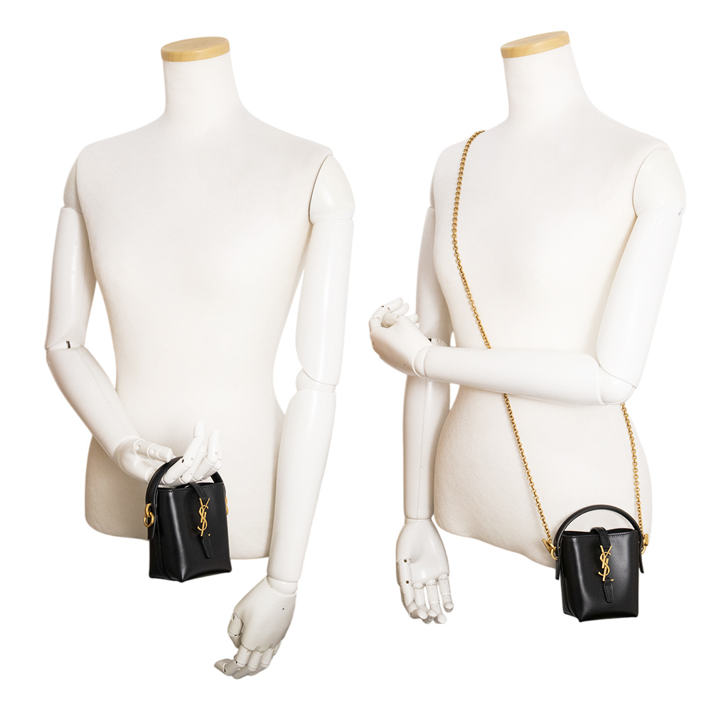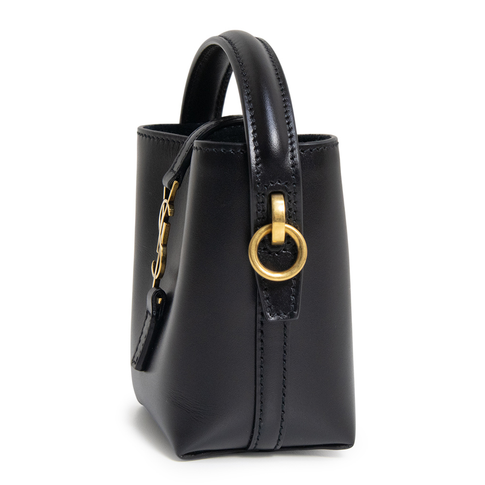 アイコニックなLE 37バケットバッグのマイクロバージョン。メタルのYSLモノグラムフッククロージャーがあしらわれています。レザー製トップハンドルと調節・取り外し可能なストラップでお好みの持ち方でお使いいただけます。