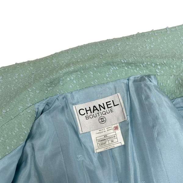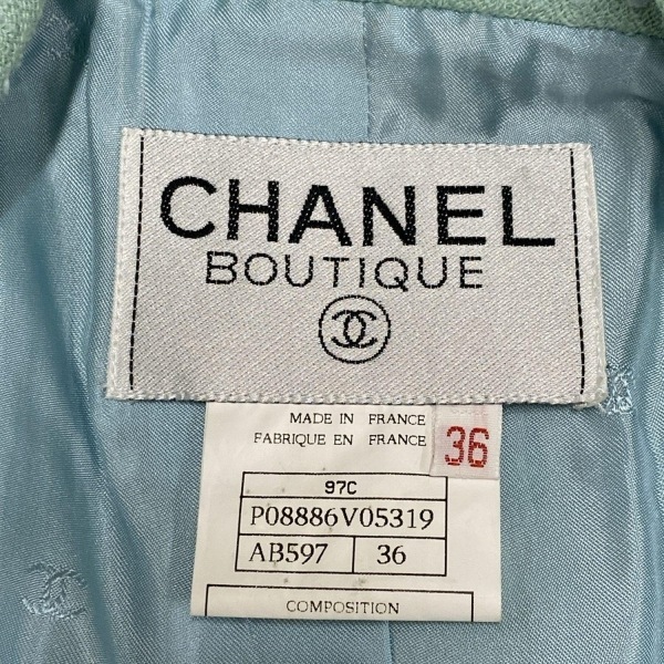 シャネル CHANEL サイズ36 S P08886 - ウール ライトグリーン×ライトブルー レディース 長袖/肩パッド/春/秋 97C ジャケット