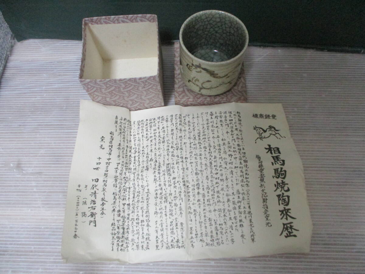 送料安★ゆうパック60サイズ★田代法橋造 十四代 田代清治右衛門 相馬焼 馬上杯 湯呑 十四世 未使用