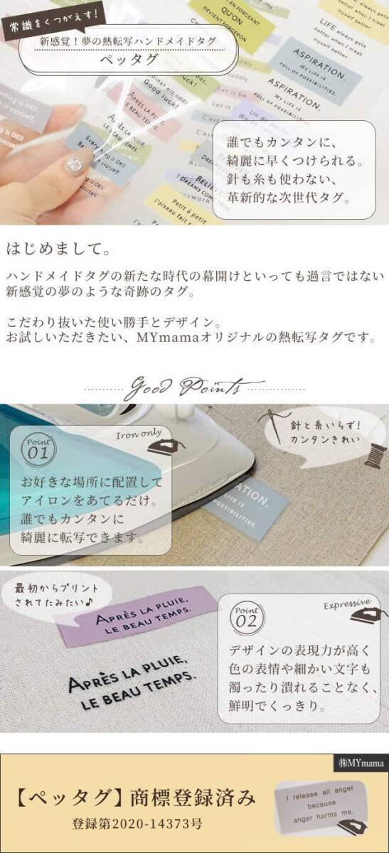 MYmama ペッタグ アイロン 転写シート 転写タグ タグ 60デザイン セット ハンドメイド クラフト