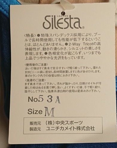 [生産終了]《新品未使用》Silesta ユニチカ競泳用水着 53A 紺x水 (basicモデル) Mサイズ
