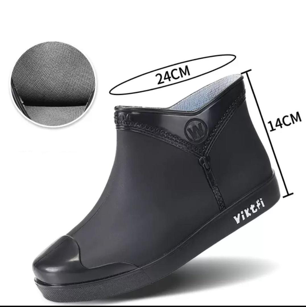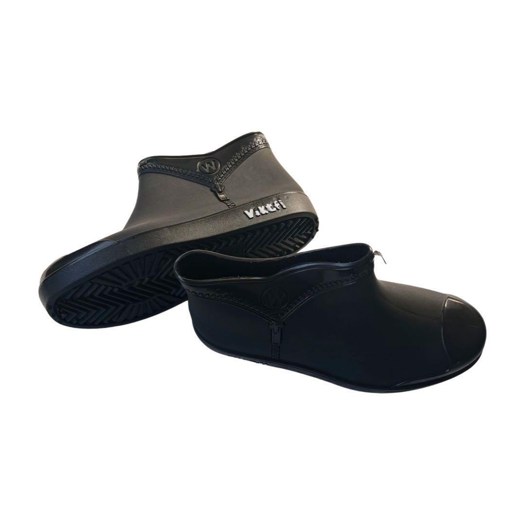素材には防水性に優れたPVCを使用し、軽量ながらしっかりと水を防ぎます。ソール部分は滑りにくい構造となっており、濡れた路面でも安心して歩行できます。
