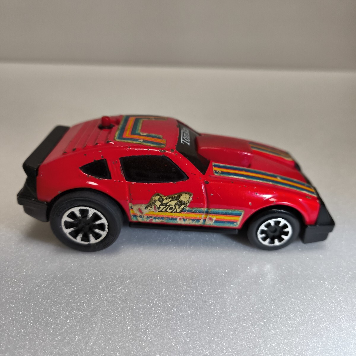 かなり古いダイキャストミニカーで、前進方向にタイヤを回転させて、ボタンを押す走り出す面白いミニカーです。