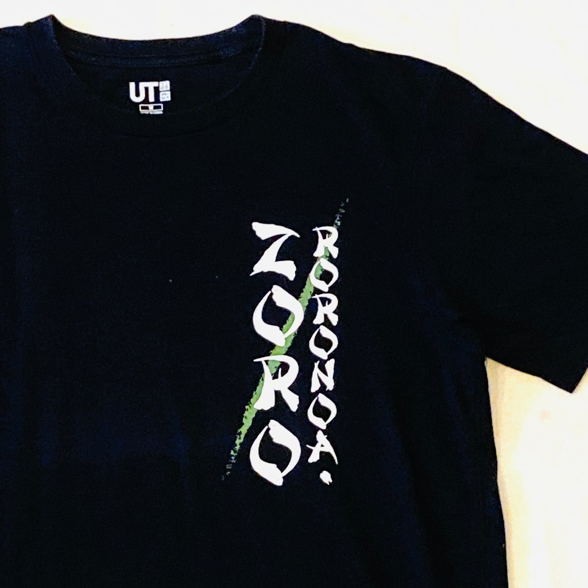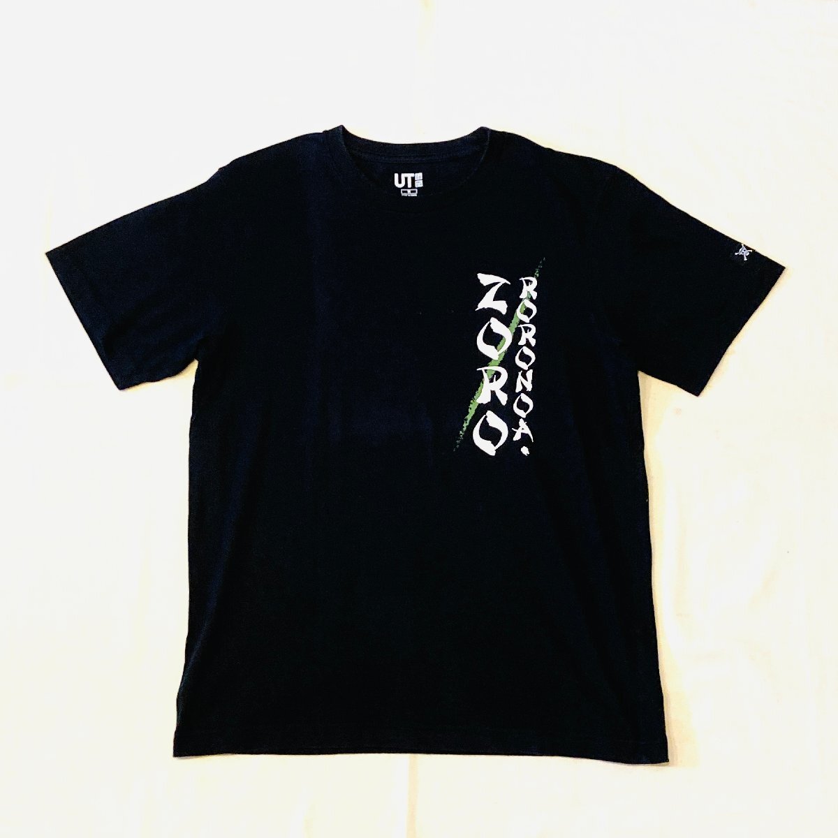 ONE PIECE ロロノア ゾロ ロゴ デザイン Tシャツ ブラック/黒 M