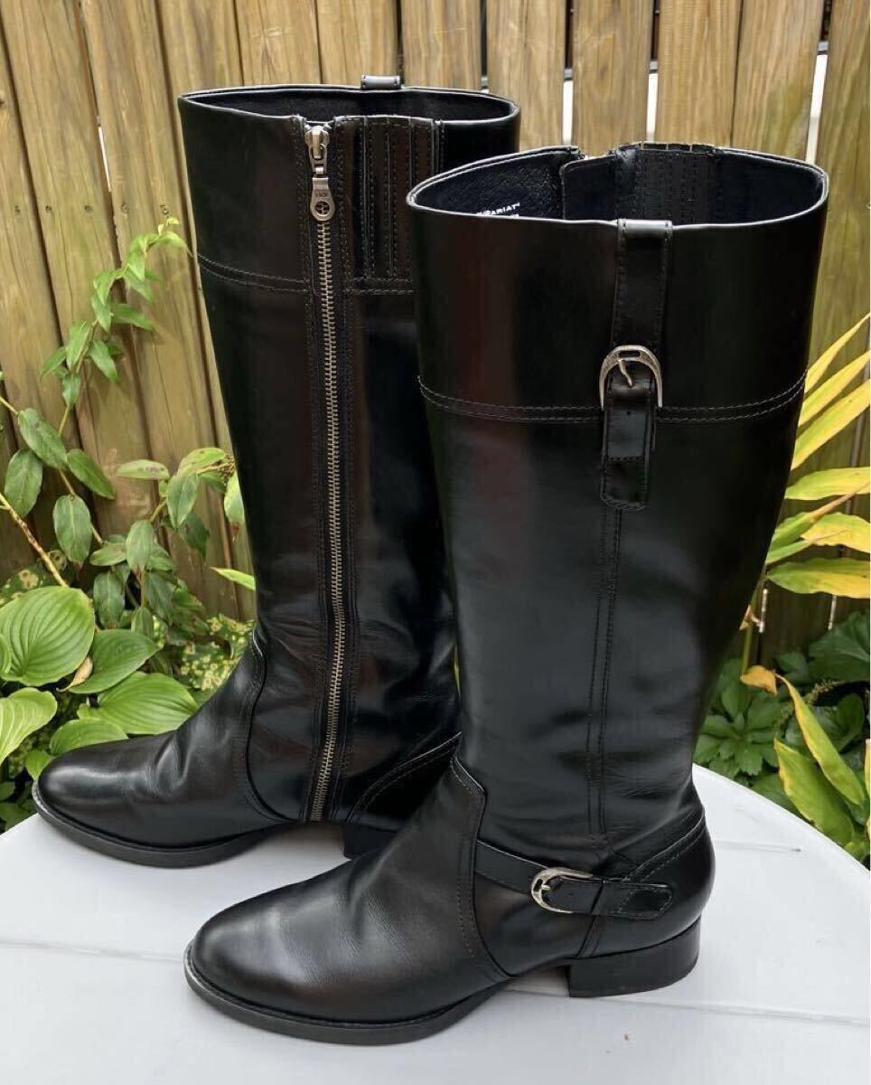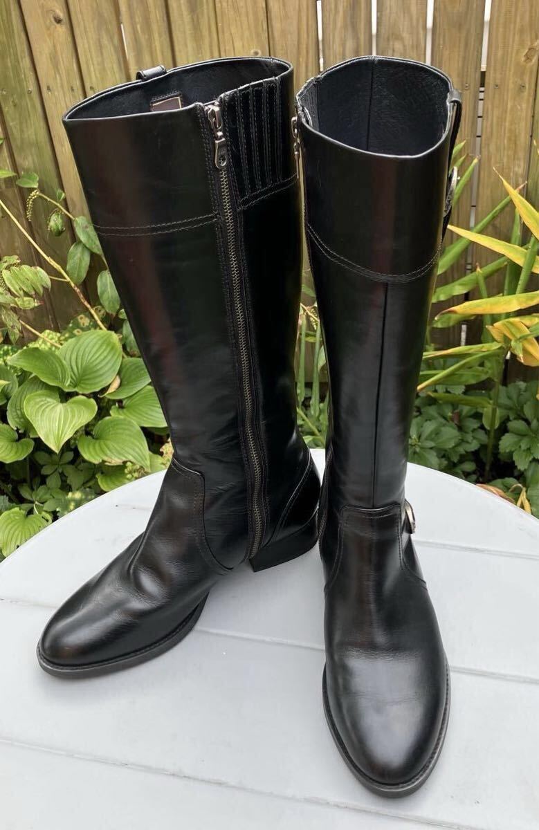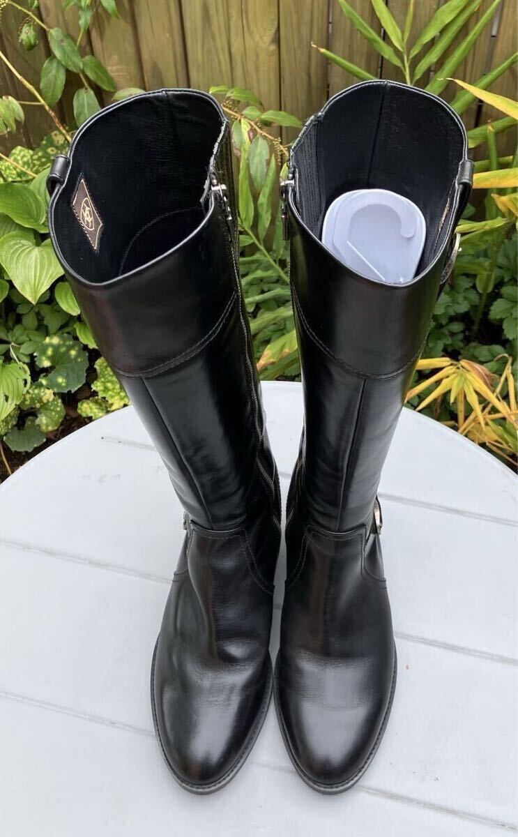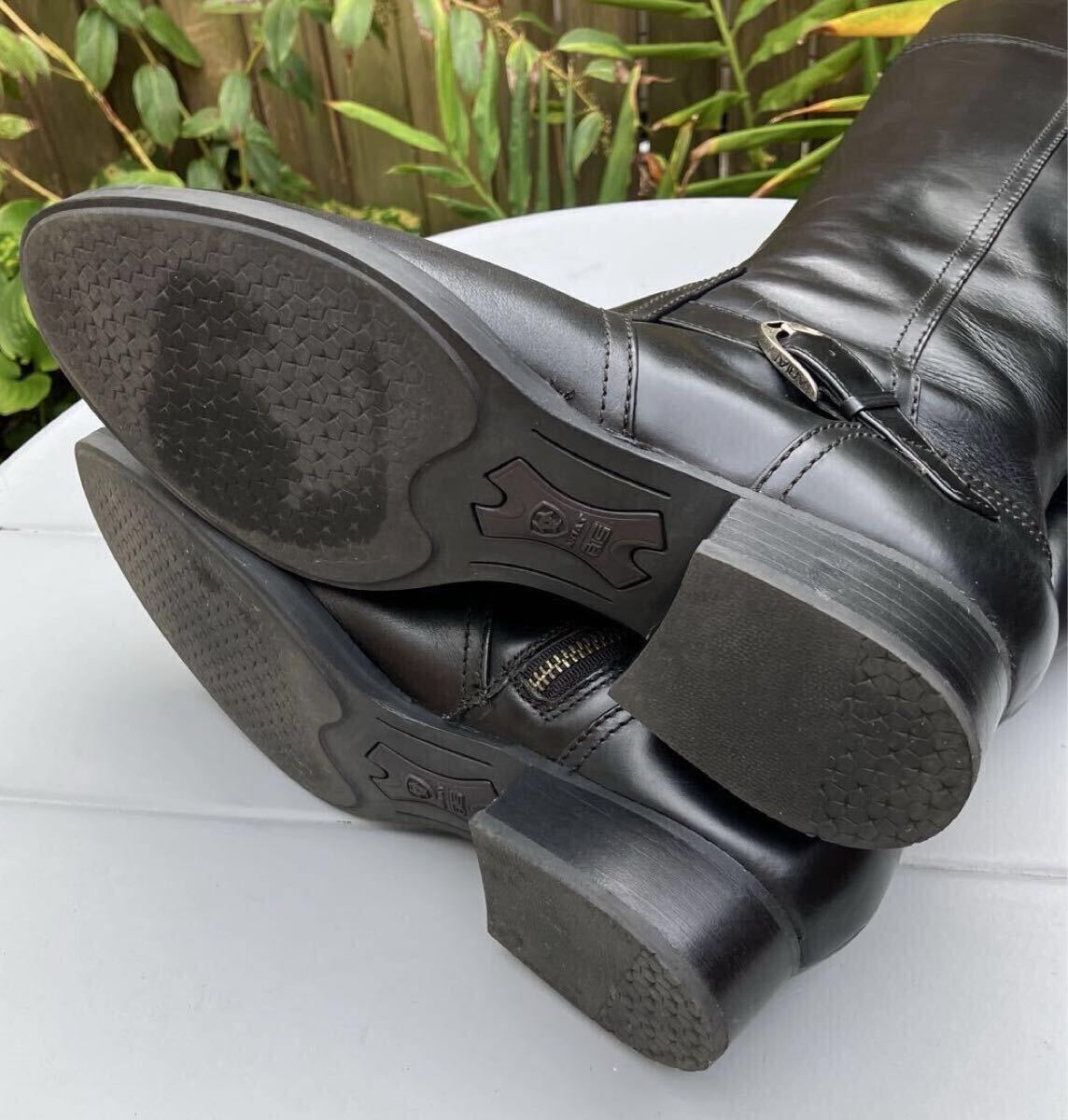 本革のロングブーツです。お色はブラックです。インサイドファスナーでの開閉になります。ソールはラバーソールです。サイズが合えば男性の方にもご使用できるデザインです。国内では手に入りにくいサイズです。整理のため出品します。ぜひこの機会をお見逃しなく!