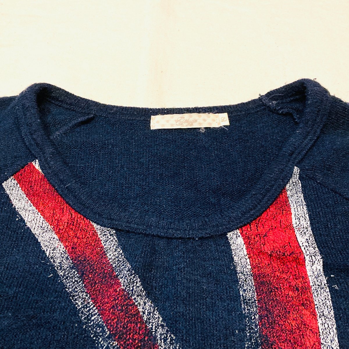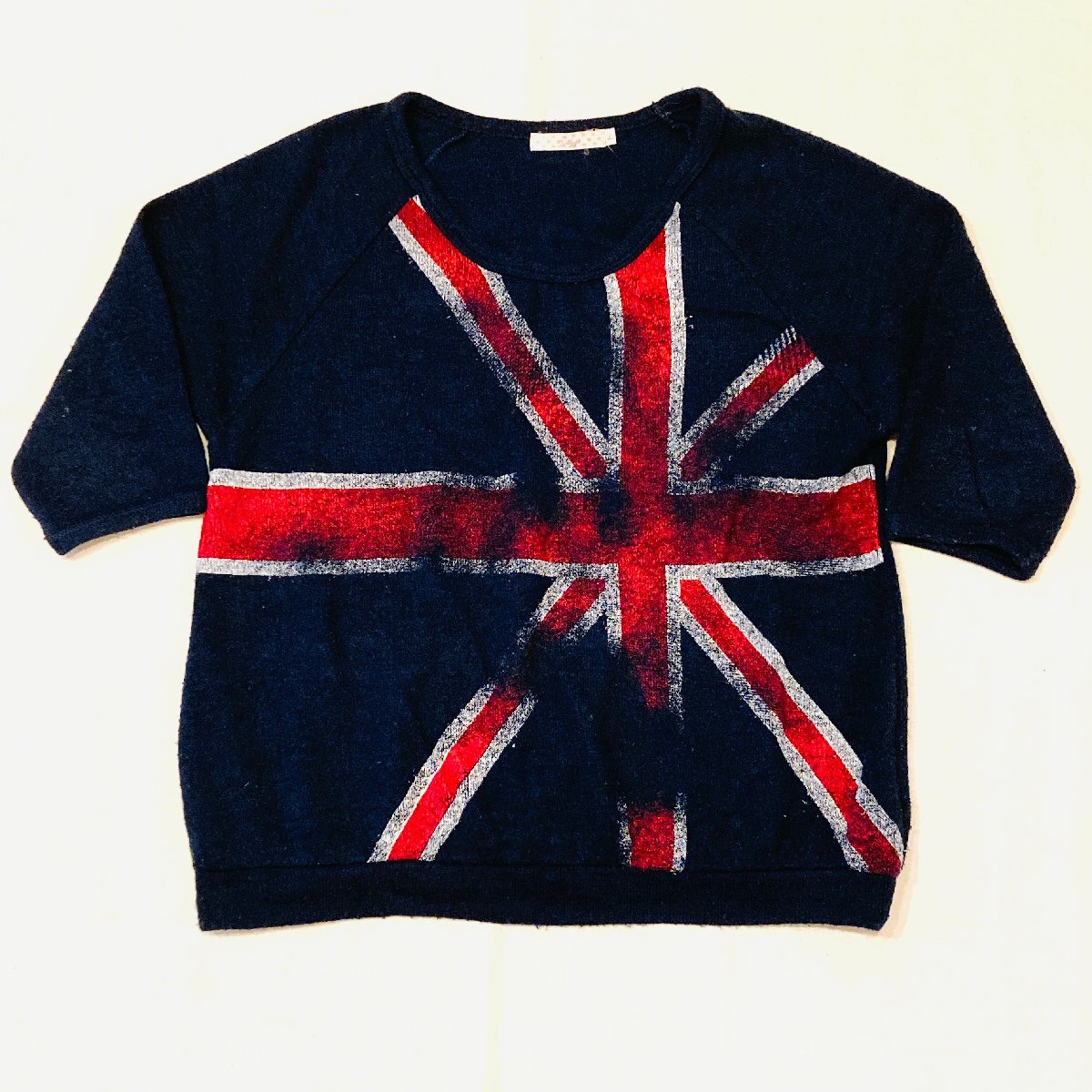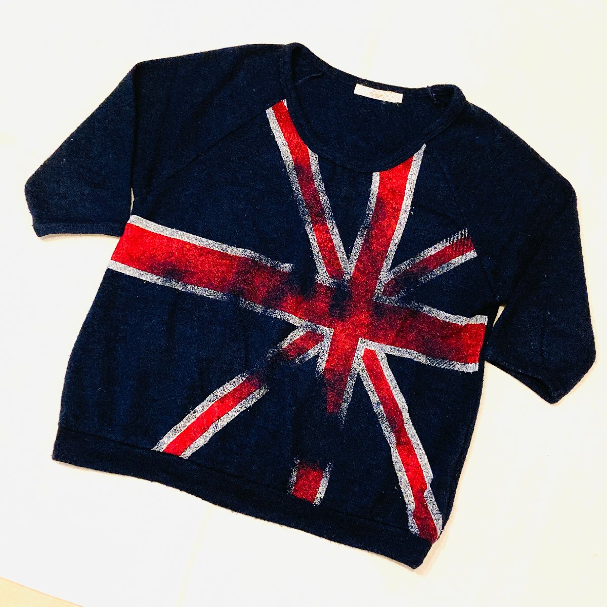 ユニオンジャック イギリス国旗 モチーフ ショートスリーブ 半袖 ニット ネイビー L