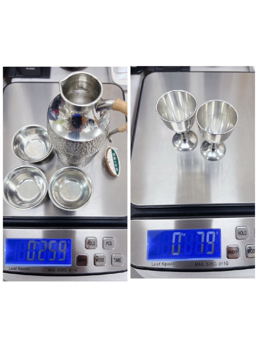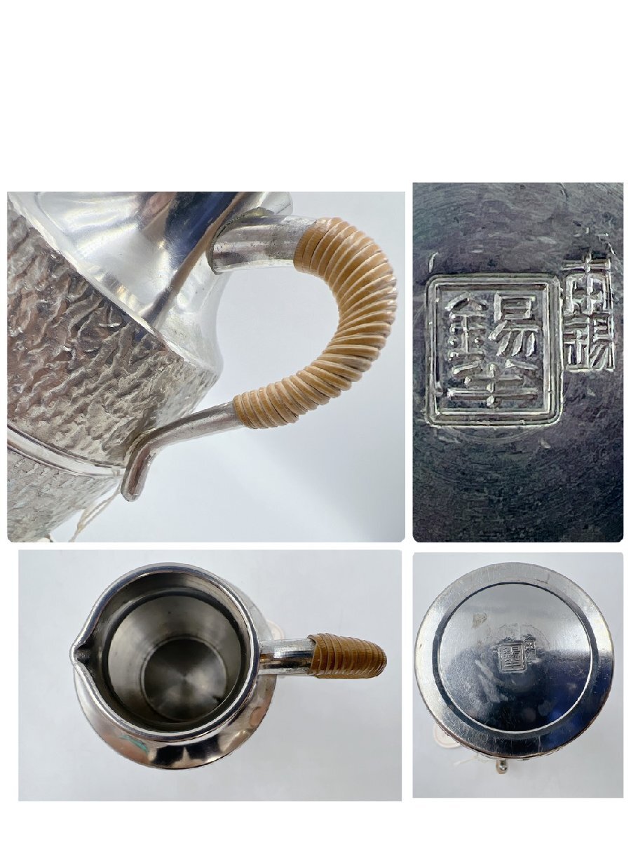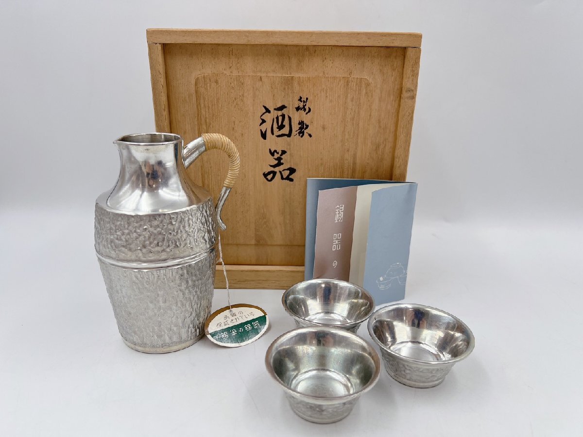 1円 本錫 錫半 酒器セット お猪口 盃 ぐい呑み 徳利 錫製 共箱 重量259g&馬上杯 2客 重量79g おまとめセット 現状保管品 【TO013】