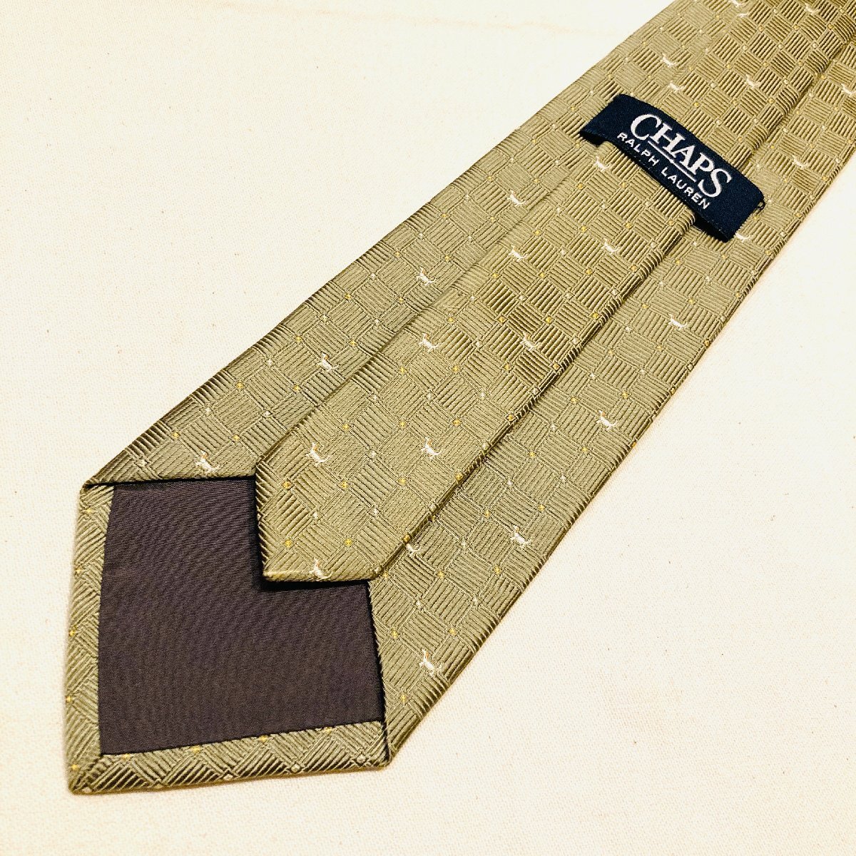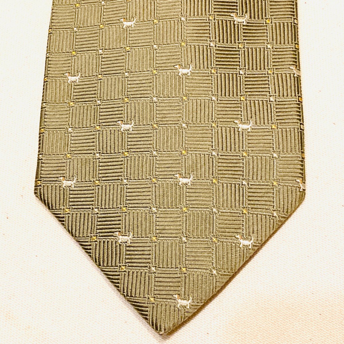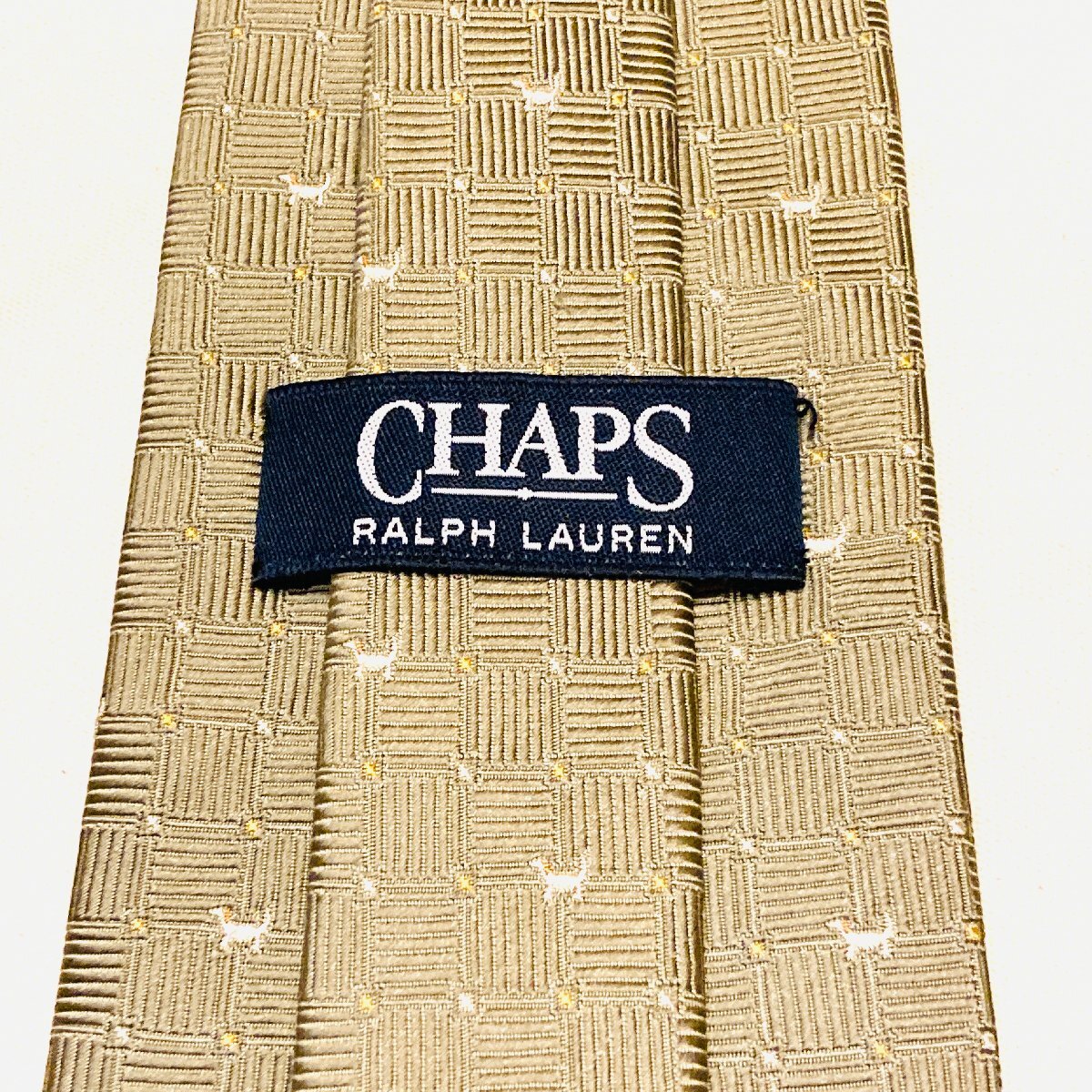 CHAPS RALPH LAUREN チャップス ラルフローレン 日本製 絹 シルク SILK 100% 高級 ネクタイ 薄金 シャンパンゴールド系 犬 モチーフ