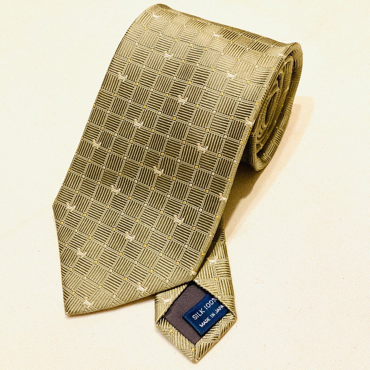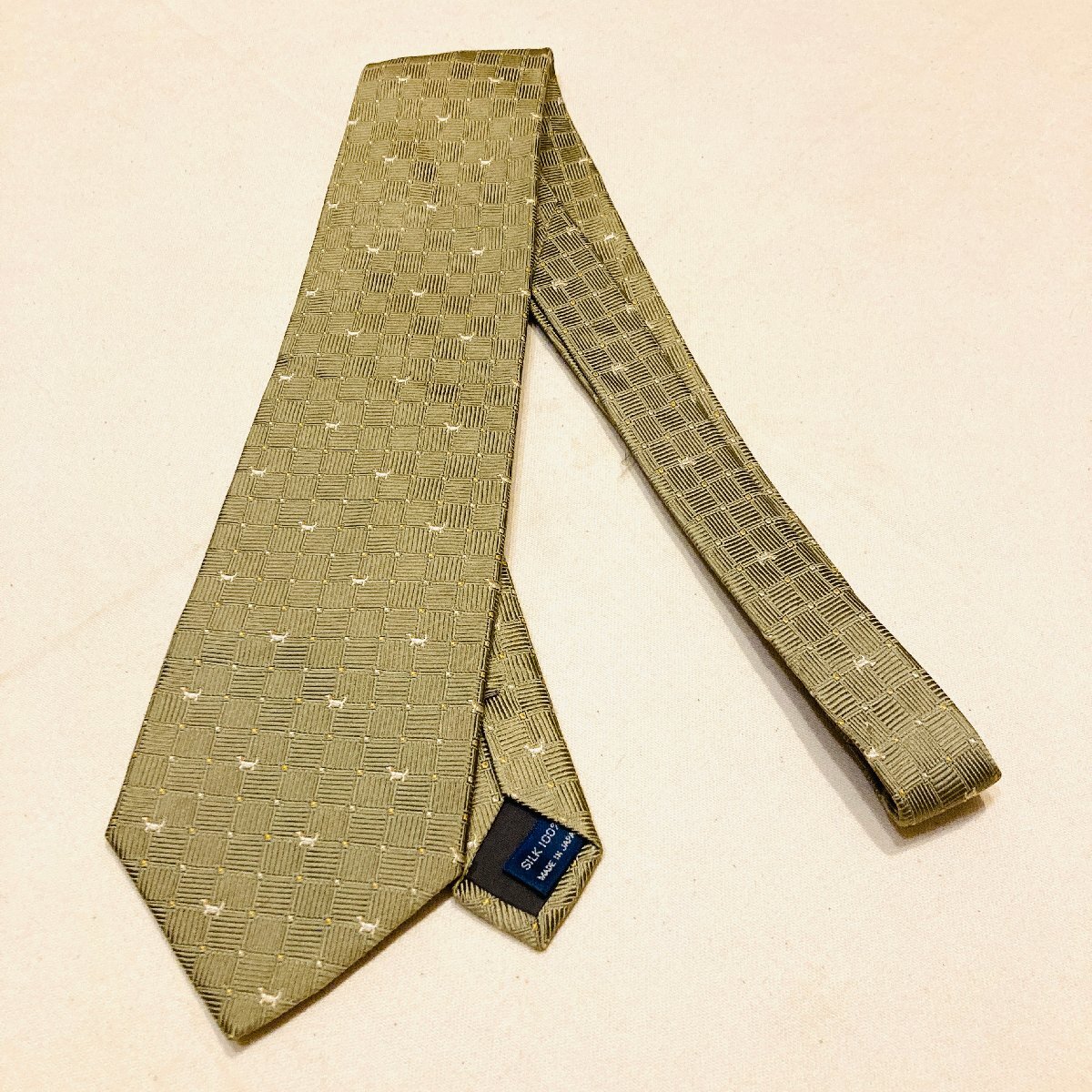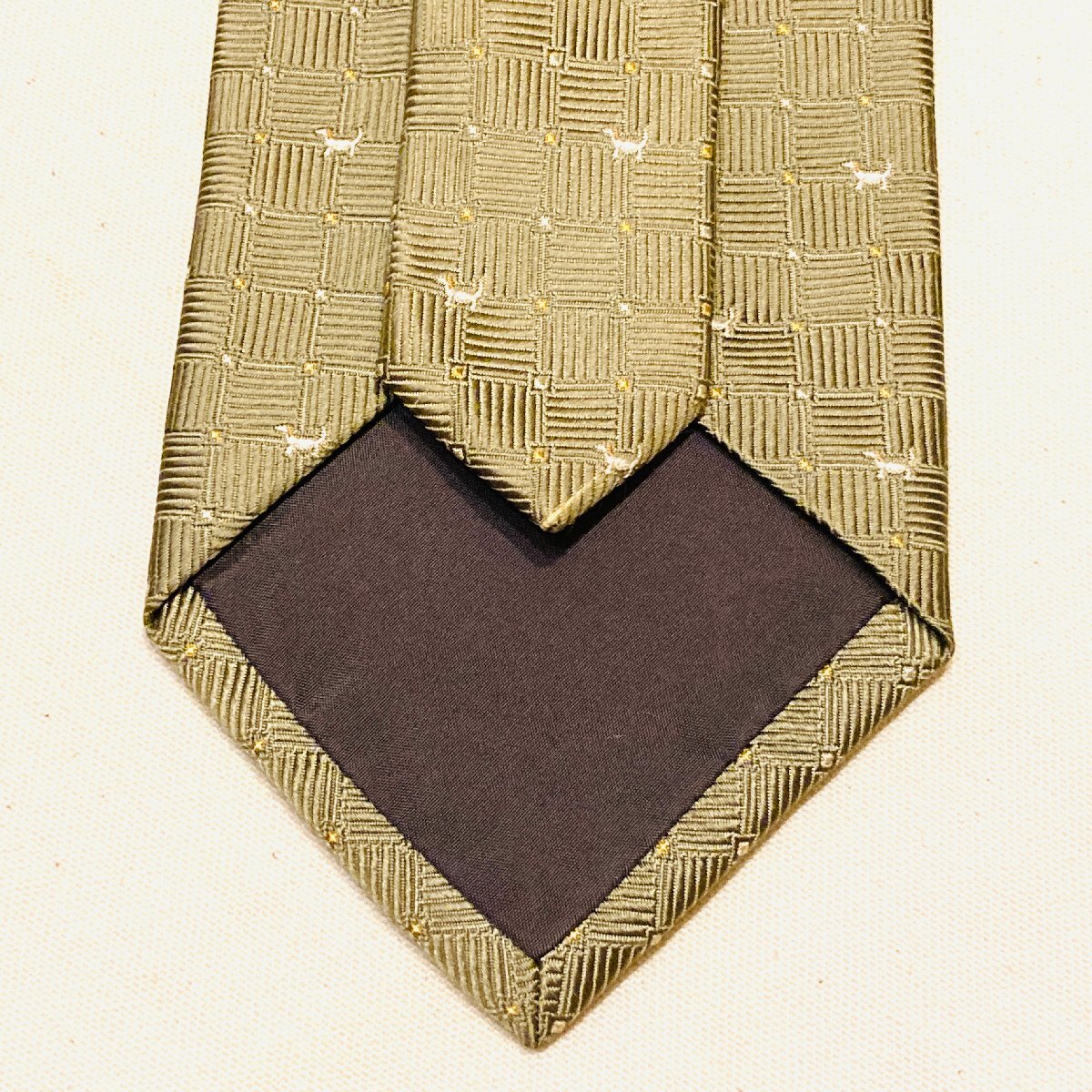 CHAPS RALPH LAUREN チャップス ラルフローレン 日本製 絹 シルク SILK 100% 高級 ネクタイ 薄金 シャンパンゴールド系 犬 モチーフ
