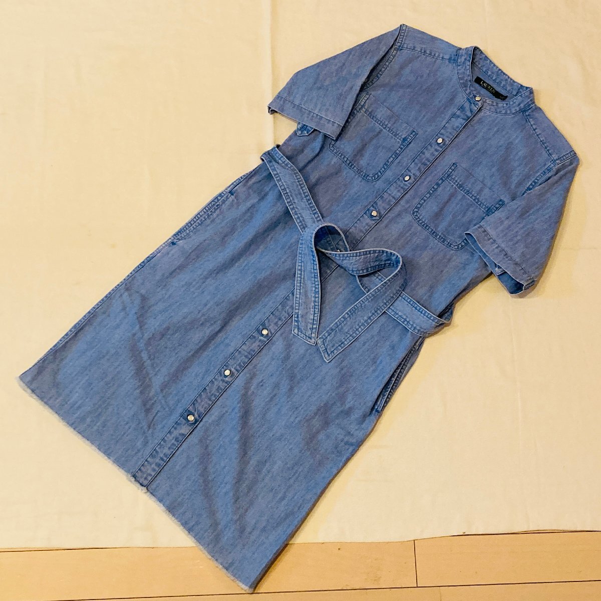 LAUREN RALPH LAUREN ラルフローレン デニム ショートスリーブ ワンピース ドレス ロング丈 インドネシア製