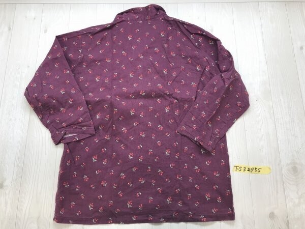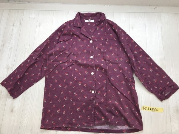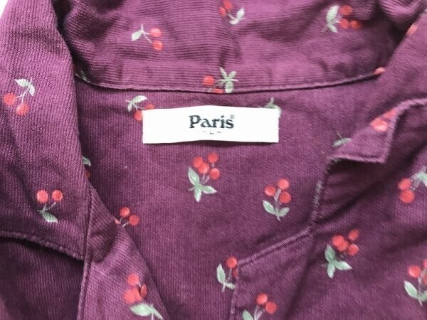 PARIS レディース さくらんぼ柄 オープンカラー コットン パジャマ 長袖シャツ L ボルドー です。