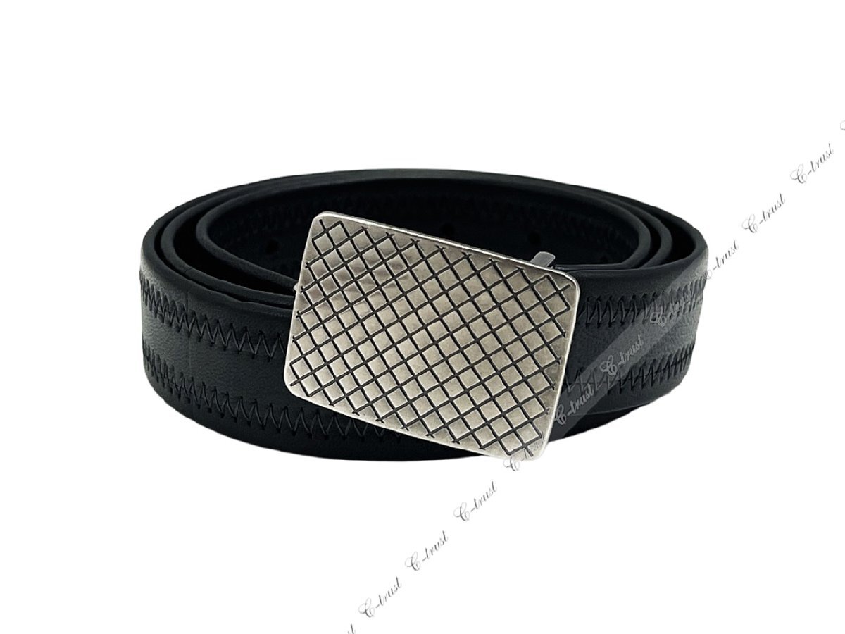 K670-95.. BOTTEGA VENETA ボッテガ ヴェネタ ベルト プレート バックル アンティーク ナッパ ロゴ イタリア製 ★ 1217 BLACK × ARDOISE
