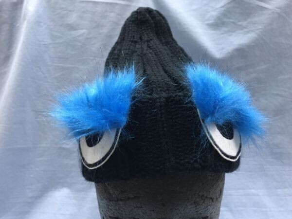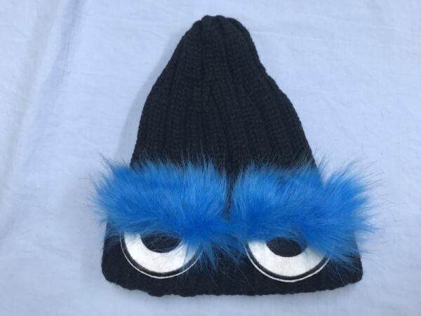 韓国ファッション K-POP キャラクター 目付き フェイクファー付き ニット ワッチ キャップ 帽子 キッズ 子供服 レディース アクリル100% 黒 です。