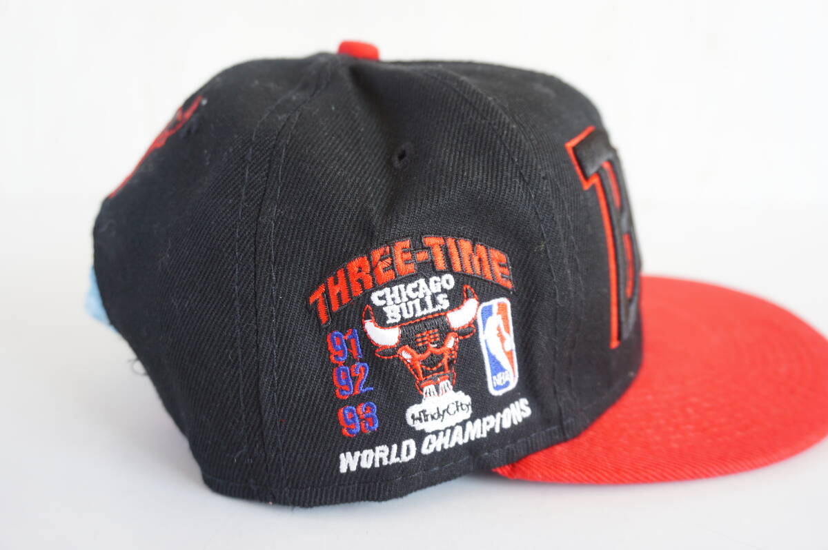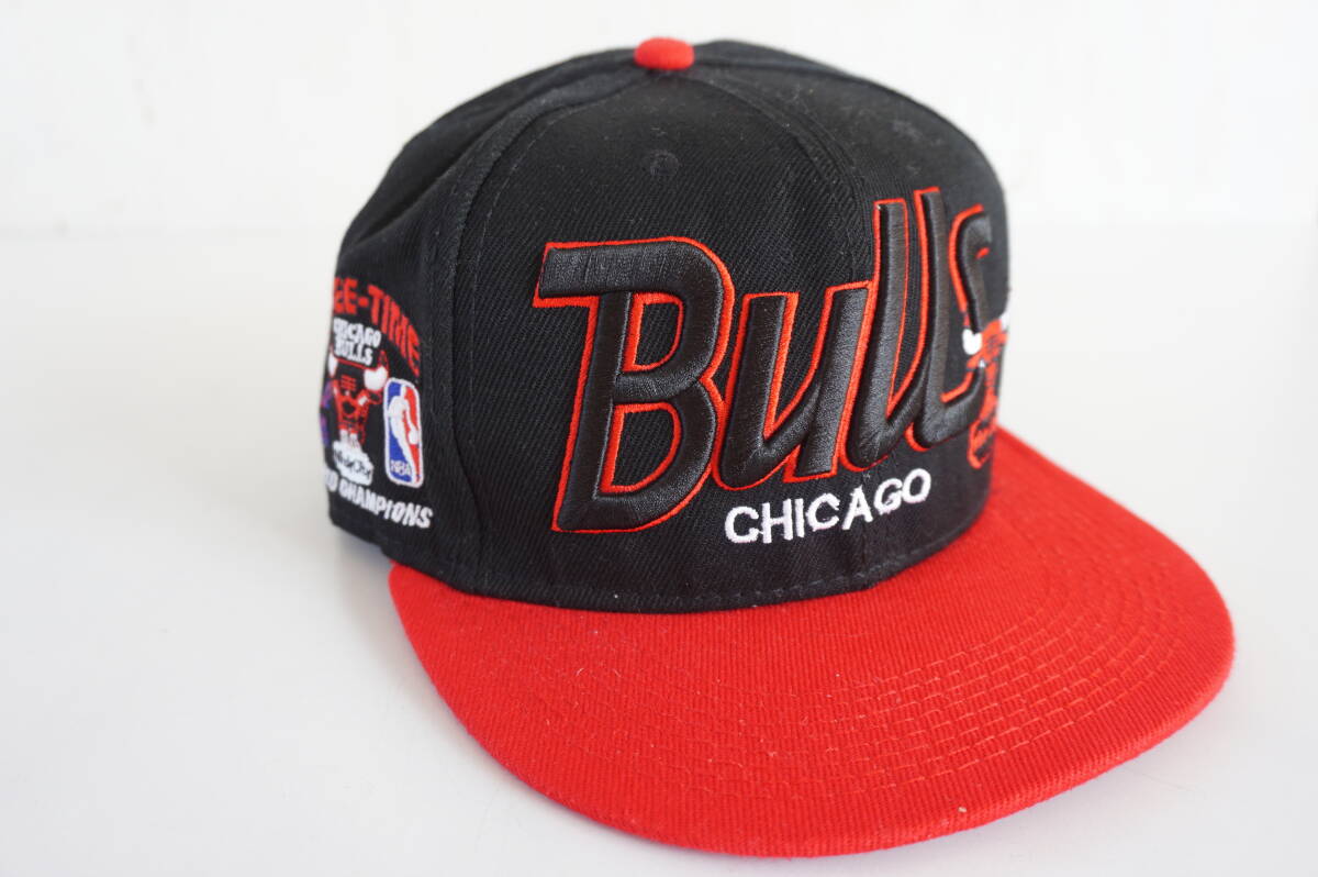 CHICAGO BULLS/シカゴブルズ*キャップ/帽子*刺繍 *91, 92, 93 NBA Champions ジョーダン*黒 赤*ヴィンテージ/ビンテージ