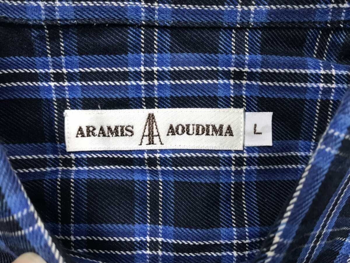 アラミス ARAMIS AOUDIMA レトロ トラッド ストリート ツイル オーバーチェック 胸ポケット 長袖シャツ メンズ 日本製 コットン混合 L 青 です。
