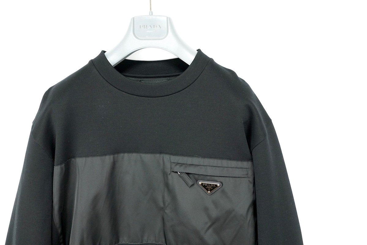PRADA プラダ FELPA DOUBLE RE スウェット フェルパダブル トライアングル ロゴ クルーネックトップス ブラック Mサイズ UJL096 S222 11JE