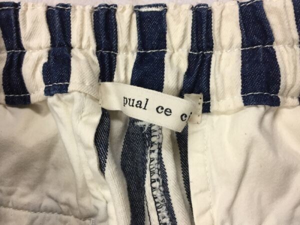 pual ce cin アメカジ ガーリー ナチュラル系 ピュアルセシン ワイド 太ストライプ イージーパンツ ボトムス レディース 白/紺