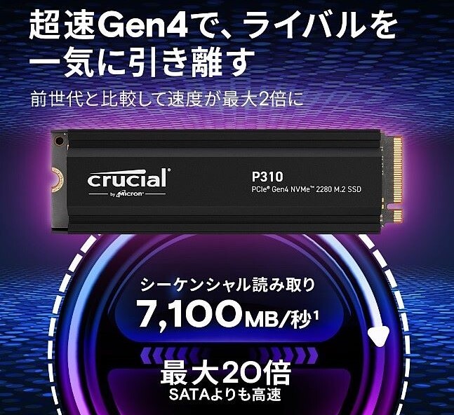 (PCIe Gen4 x4 読み取り: 最大7,1000MB/s 書き込み : 最大6,000MB/s )