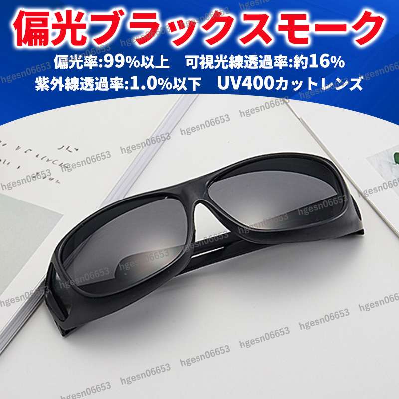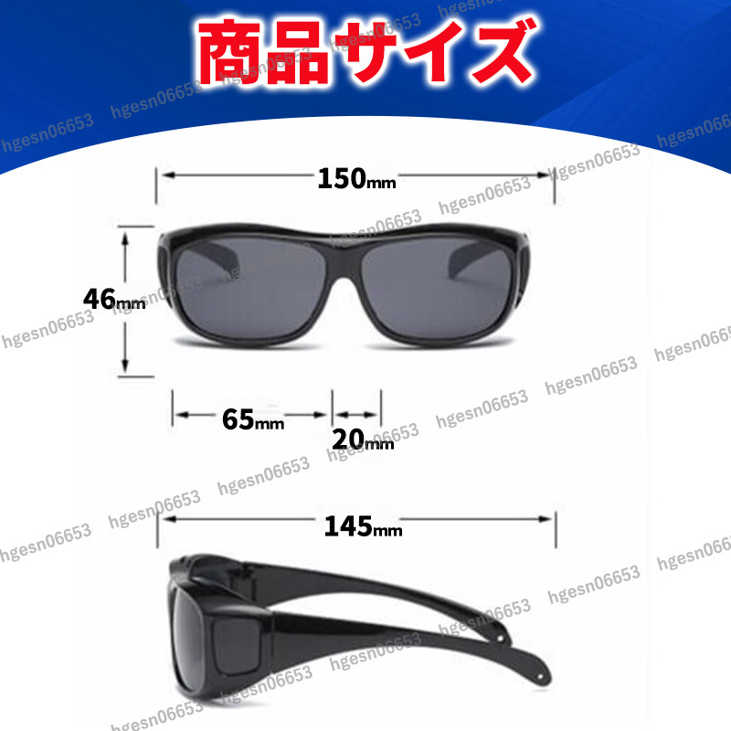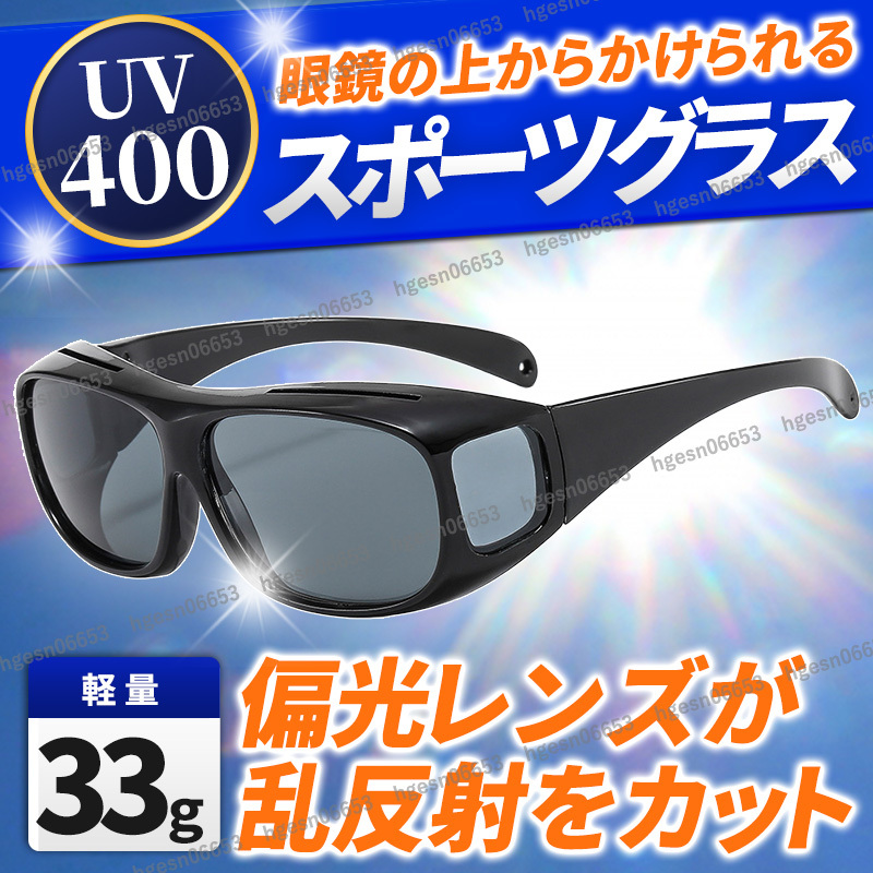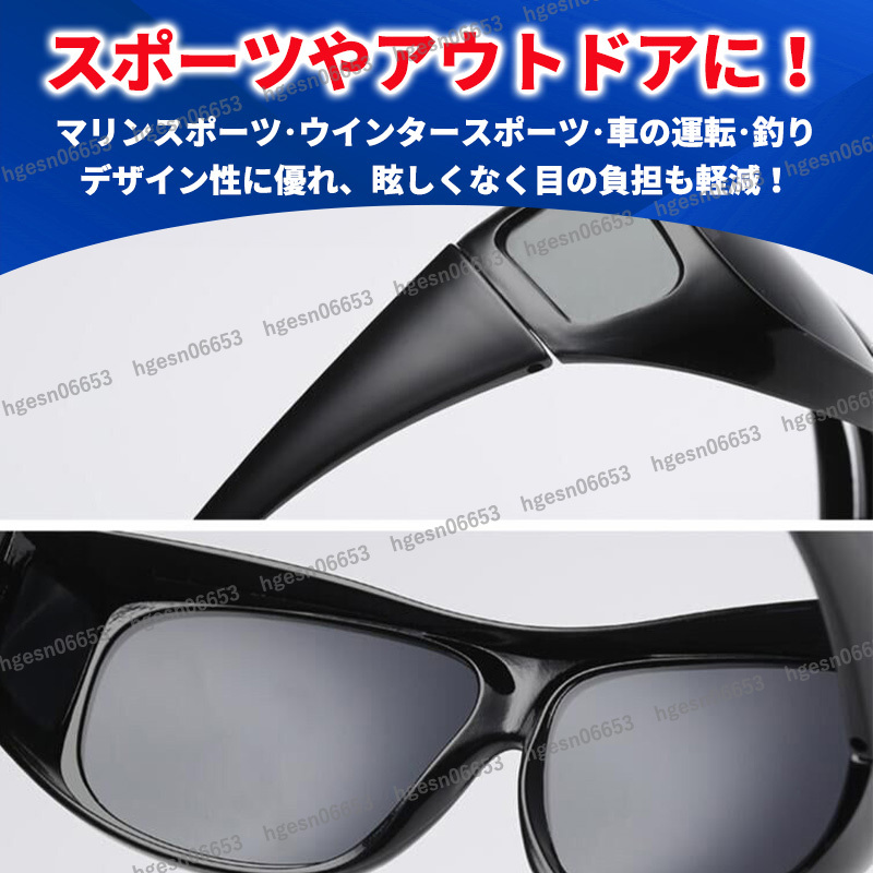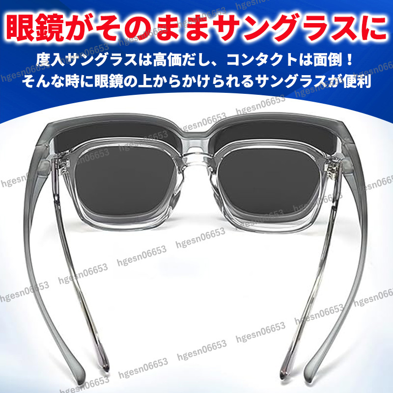 眼鏡の上からかけられる 偏光オーバースポーツサングラスです。 スモークレンズとマットブラックフレームが特徴です。 ドライアイやアレルギーでコンタクトレンズが使えず、 眼鏡を常に着用しているなら、「度付きのサングラスにかけかえるのは 面倒だし、金銭的にも負担が大きい」と感じることがあるかもしれません。 そんな時には、オーバーサングラスを試してみませんか? 【紫外線の怖さ】 肌の紫外線対策には気を遣っても、目の紫外線対策は忘れがちです。 冬でも2月には真夏の80%ほどの紫外線が降り注いでいます。 裸眼で紫外線を浴び続けると年齢とともに目の病気のリスクが高まります。 【オーバーサングラスの特徴】 UV400対応 紫外線を99%カットし、瞳を守ります。 サイドプロテクション: サイドからの紫外線も強力にブロックし、 防風・防塵対策にも最適です。 偏光レンズ: 路面や水面の反射光をカットし自然光のみを通して 見通しを良くします。 対応眼鏡サイズ 使用可能な眼鏡のサイズは約147x43ミリです。 ただし、眼鏡の形状や仕様によっては使用できない場合があります。 オーバーサングラスを使えば、普段の眼鏡の上から簡単に装着でき、 紫外線対策もバッチリです。ぜひ一度お試しください。 | ||||