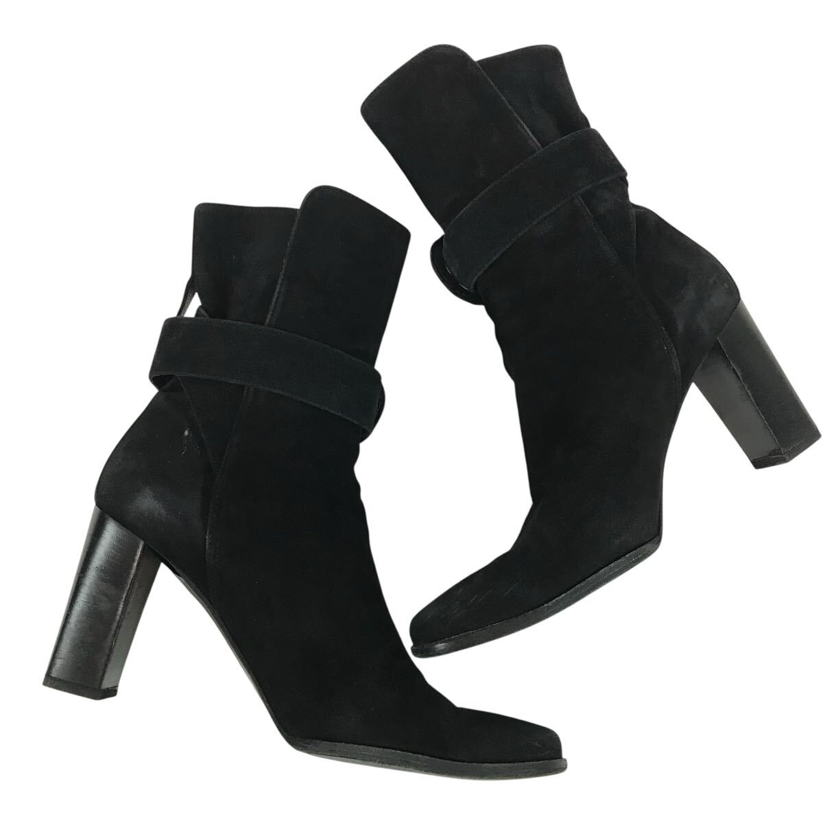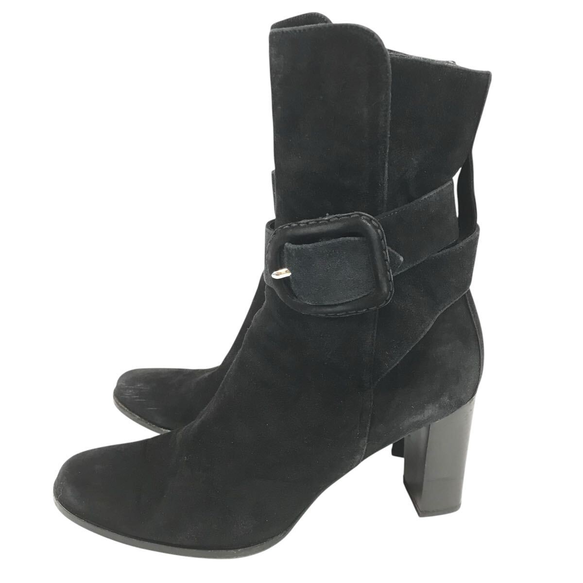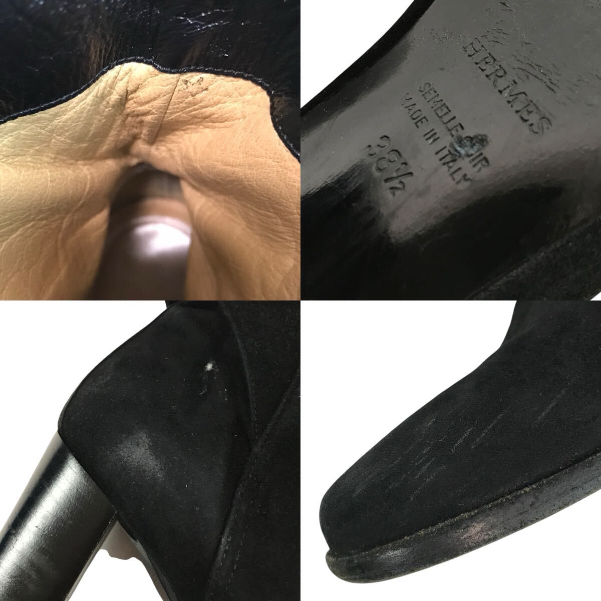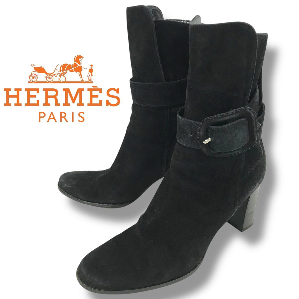 e70 HERMES エルメス スエード レザー ショートブーツ フォーマル ブラック ベルトデザイン 38.5 イタリア製 Vintage ヴィンテージ 正規品