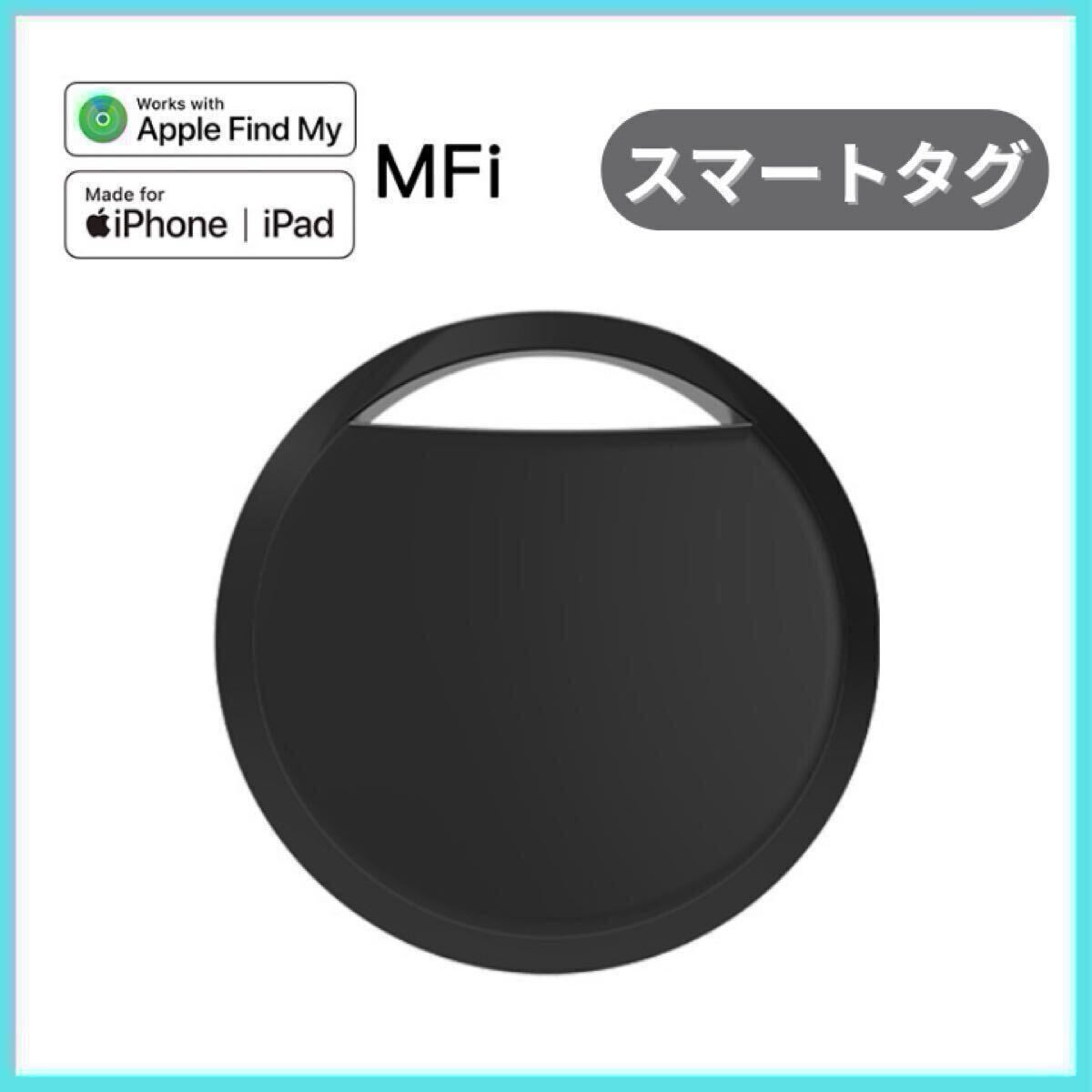 スマートタグ AirTag互換 iPhone 探す GPSタグ 紛失防止タグ トラッカー 追跡タグ Bluetoothタグ ブラック 小型 軽量 CR2032対応 Apple対応 FindMy エアタグ キーホルダー 位置情報 見守り 防犯タグ