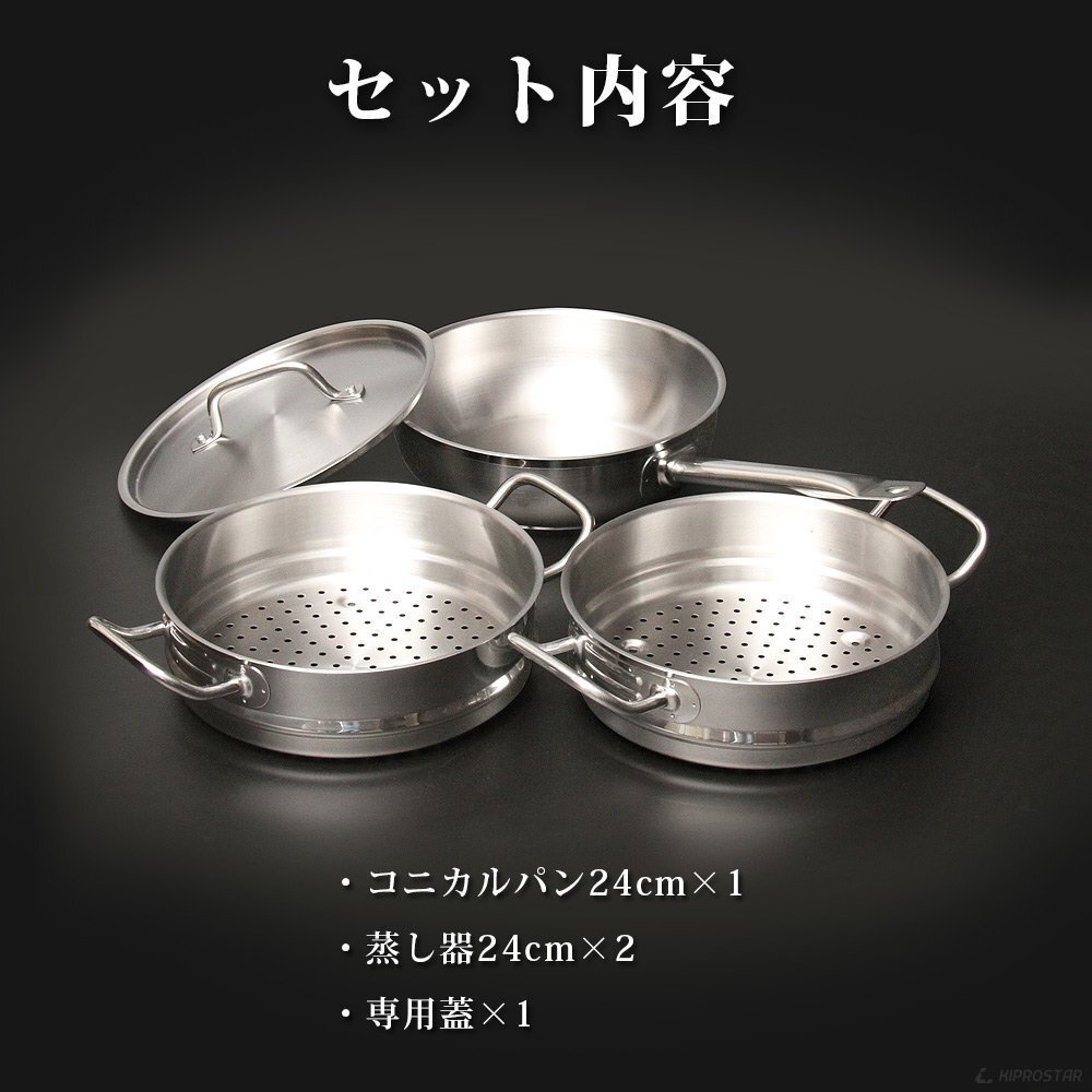 | 即納 KIPROSTAR IHコニカルフライパン 24cm 蒸し器2段セット |