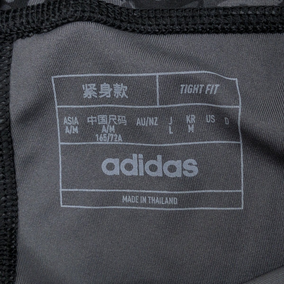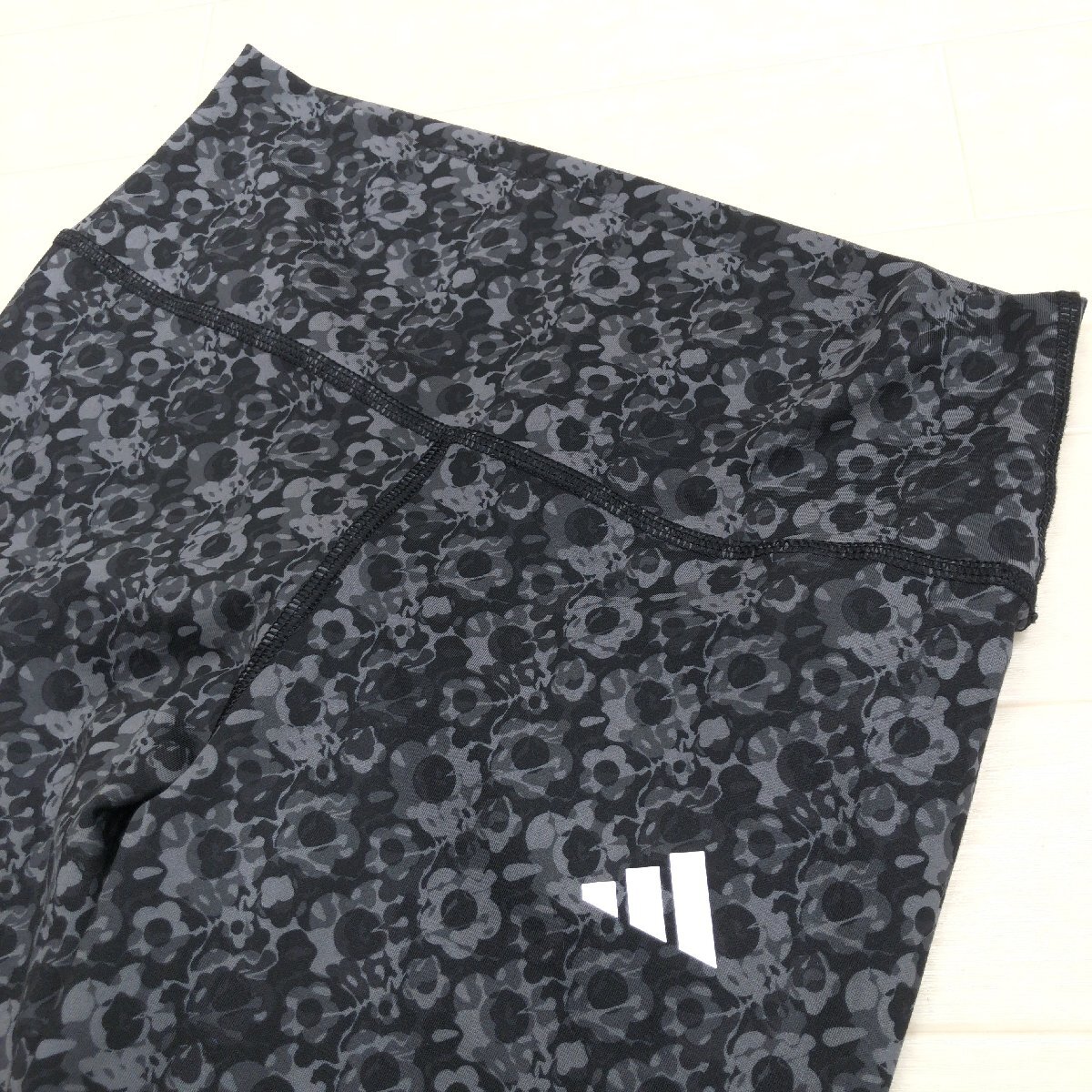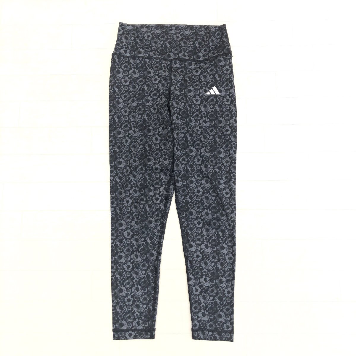 美品 adidas アディダス 総柄 ストレッチ レギンス パンツ L グレー タイツ スパッツ インナーウェア トレーニング ジム レディース 婦人