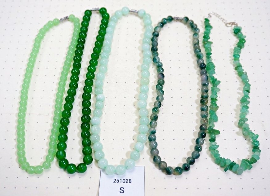 ヒスイ メノウ等 緑石系 天然石ネックレス ペンダント まとめて5点セット ヒスイ メノウ等の緑石系 天然石のネックレス ペンダント 5点セットです。 とても丁寧に研磨されており、艶、色味ともに非常に美しいものです。 写真がお譲りする商品の全てになります。 材質: ヒスイ メノウ等の緑石系の天然石 サイズ: ネックレスが置かれている下地の模様の点の間隔が1cmですので、参考にしてください。 個数: 5点 当店の他の出品商品との同梱料は下記のとおり落札1点につき200円です。 |