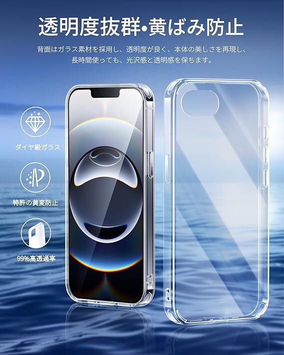| 19. iPhone 16e 用 クリア ケース 透明 背面 強化ガラス 9H硬度 米軍MIL規格 SGS認証 傷つけ防止 薄型 バンパー 黄変防止 ワイヤレス充電対応 ストラップホール付き アイフォン 16e 対応 (6.1 インチ) スマホケース(氷晶シリーズ) | ||||