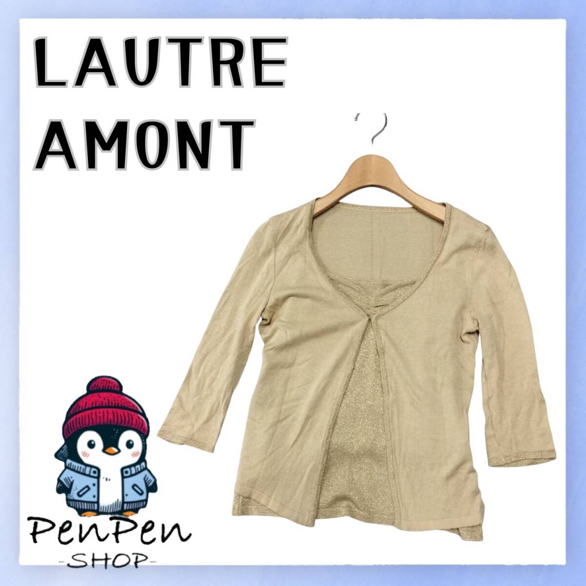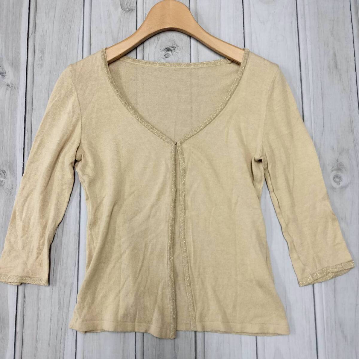 LAUTREAMONT ロートレアモン レディース カーディガン アンサンブル キャミソール ベージュ 上品な光沢感 日本製 サイズ2 Mサイズ ラメ