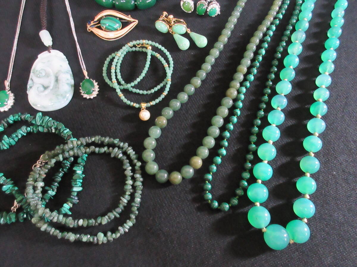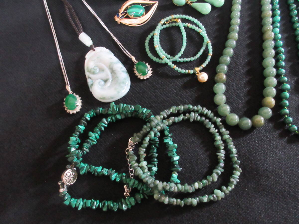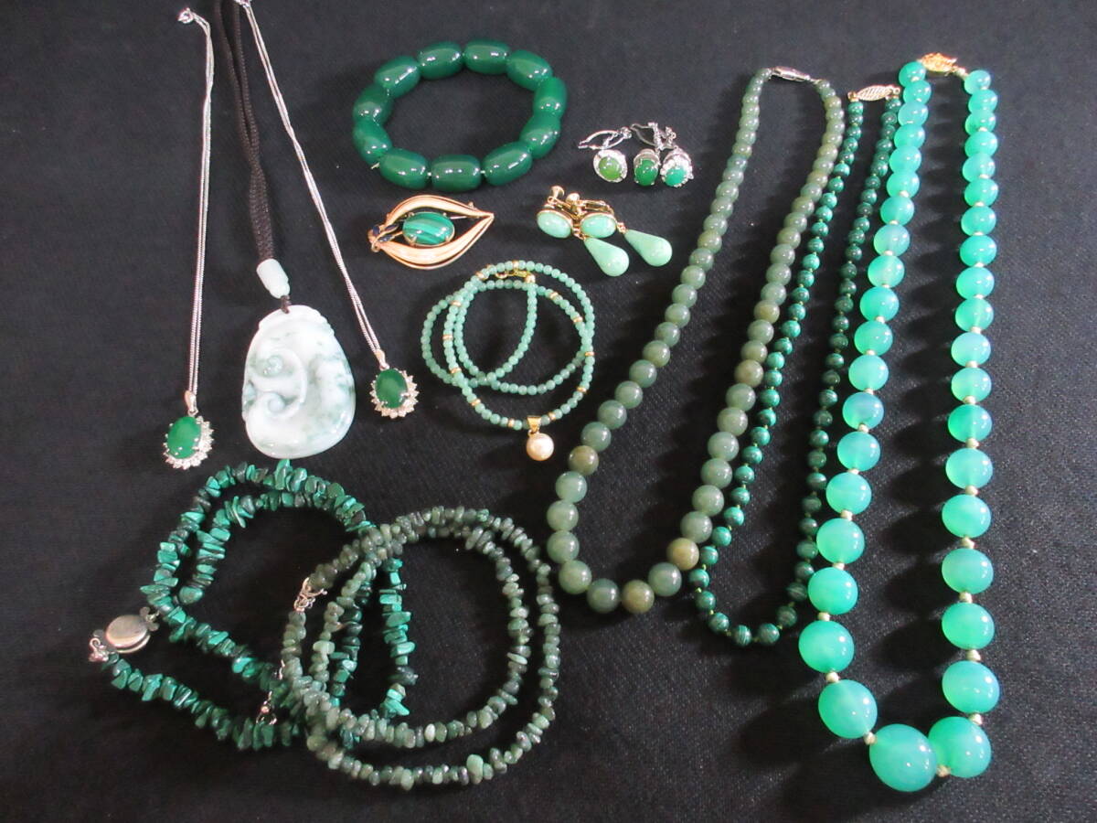*100円~【天然石】パワーストーン 緑石 アベンチュリン/ネフライト/マラカイト/ヒスイ/他 アクセサリー色々 15点セット*K-77